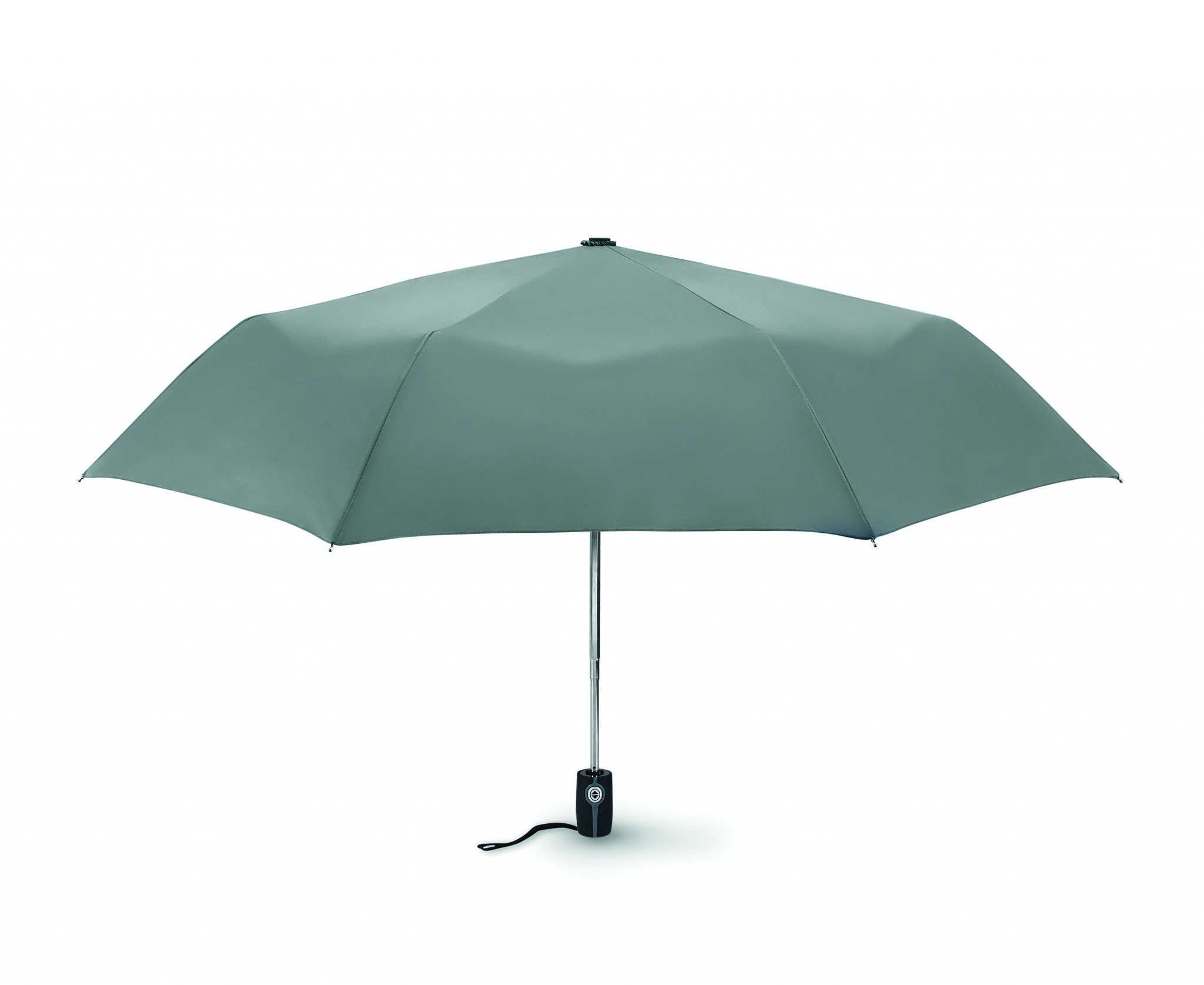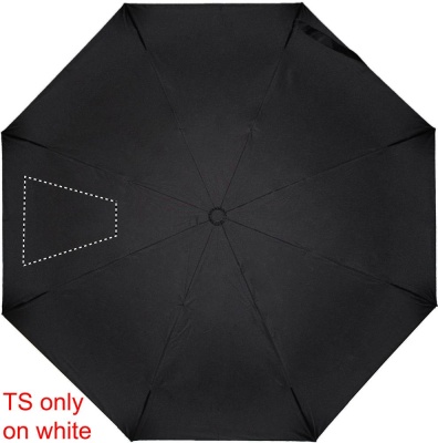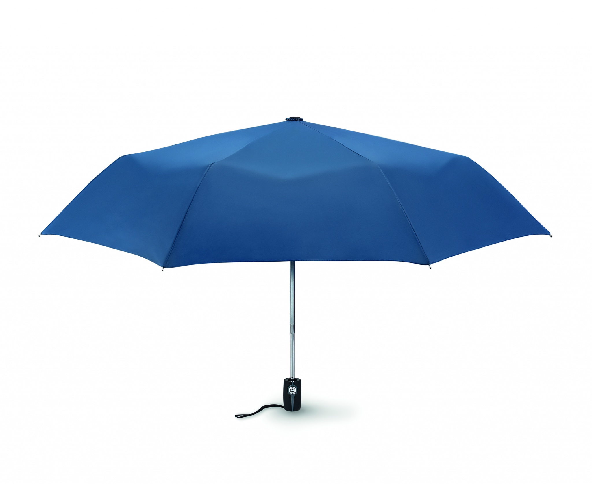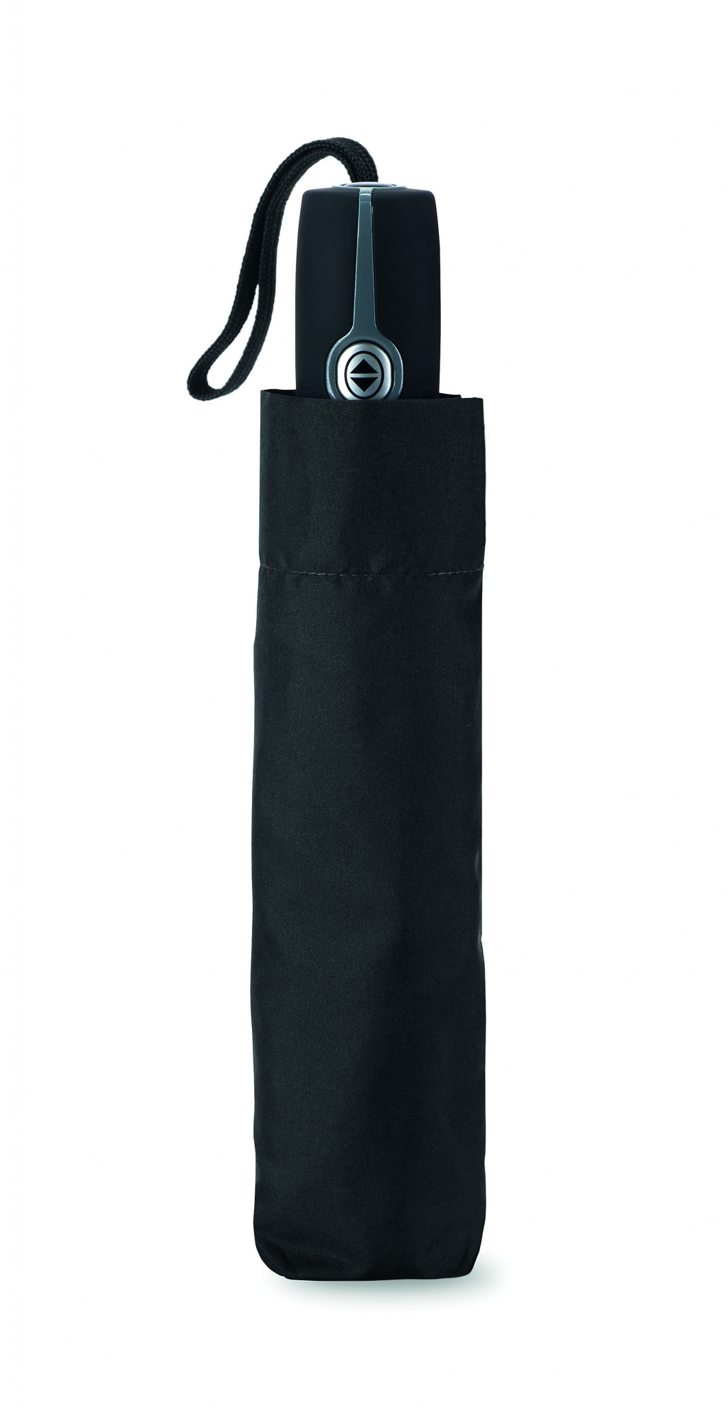 21'' Regenschirm aus 190T Seide. Windbeständig. Gestell aus verzinktem Stahl. Schienen aus schwarzem Fiberglas, Spitzen aus verchromtem Metall. Schwarz gummierter Griff mit Doming. 3fach faltbar. Passende Schirmhülle. Automatische Öffnung und Schließung.