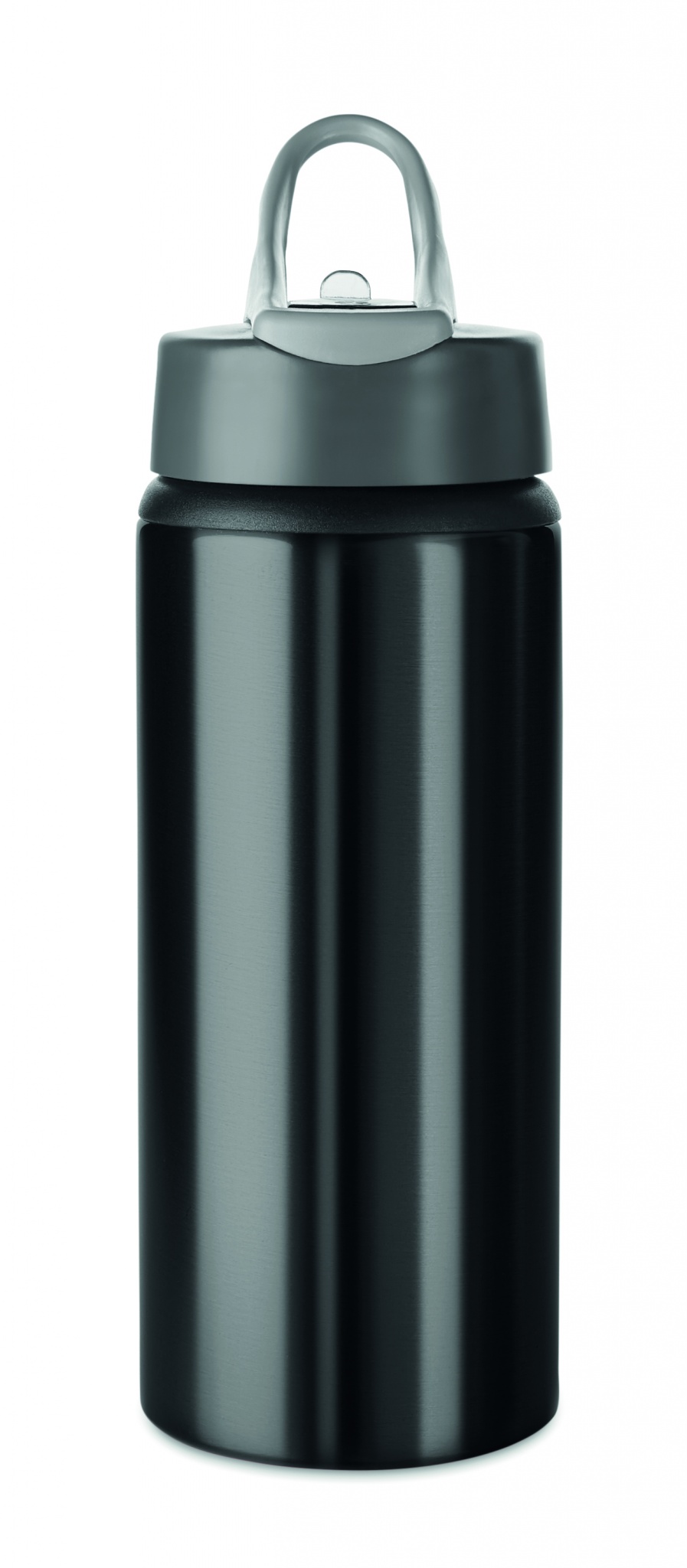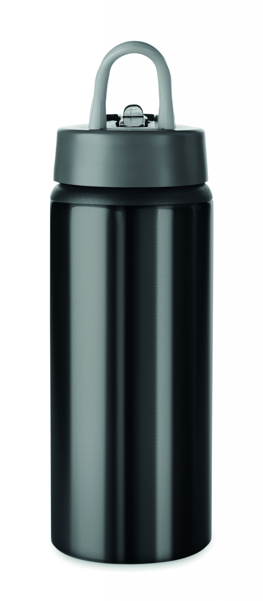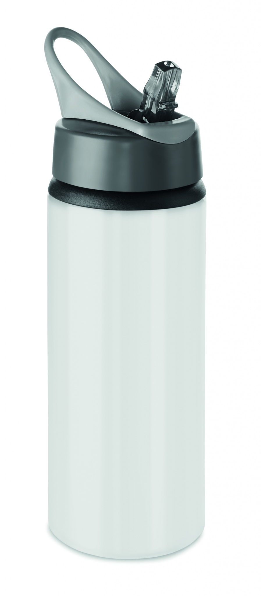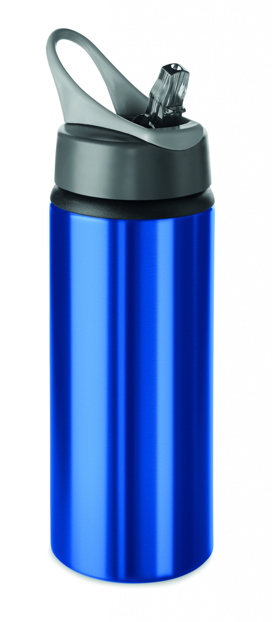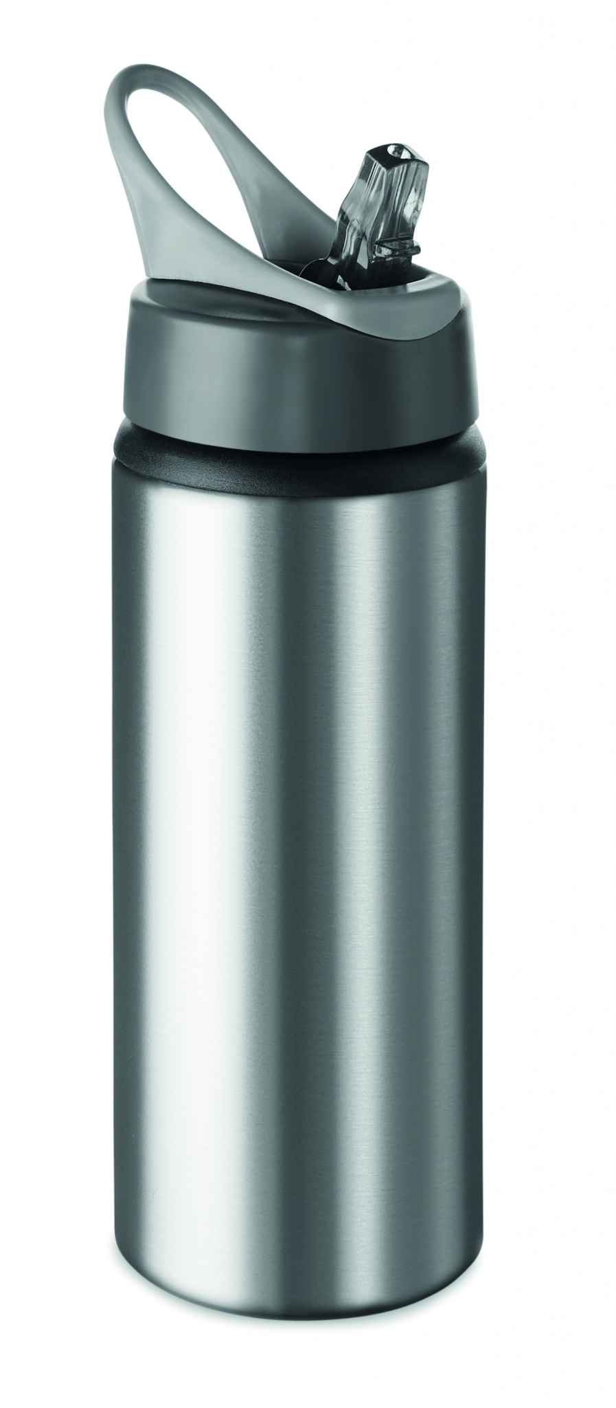 Einwandige Trinkflasche aus Aluminium. Klappbares Mundstück mit Trinkhalm und Aufhänger. Füllmenge: 600 ml.