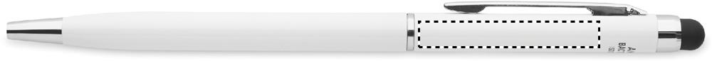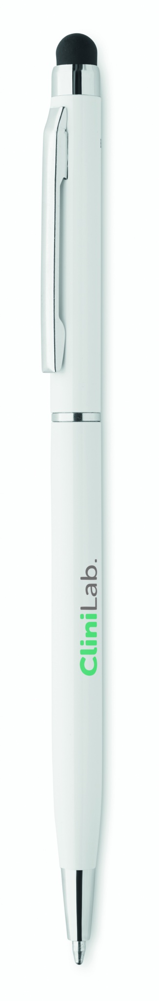Drehkugelschreiber mit Stylus aus Aluminium. Antibakterieller Schaft. Glänzend verchromter Clip. ISO 22196. Blaue Tinte.