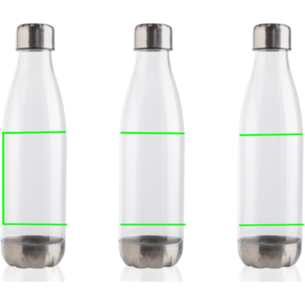 Erhöhen Sie Ihre tägliche Wasseraufnahme mit dieser auslaufsicheren Wasserflasche mit Stainless-Steel-Deckel und -Boden und transparentem Gehäuse. In einer Form, die in die meisten Getränkehalter passt. Inhalt: 500ml. BPA frei. Nur Handwäsche.