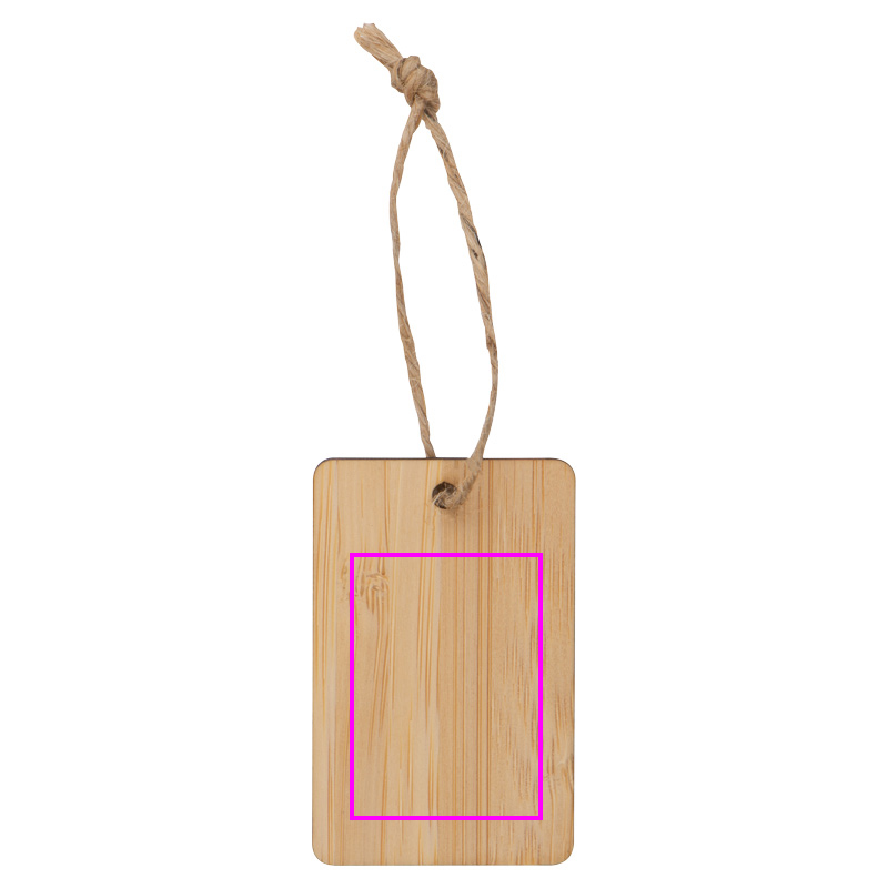 Umweltfreundlicher Bambusanhänger mit Kordel zum Aufhängen. Ihr Logo wird auf den Anhänger eingraviert.