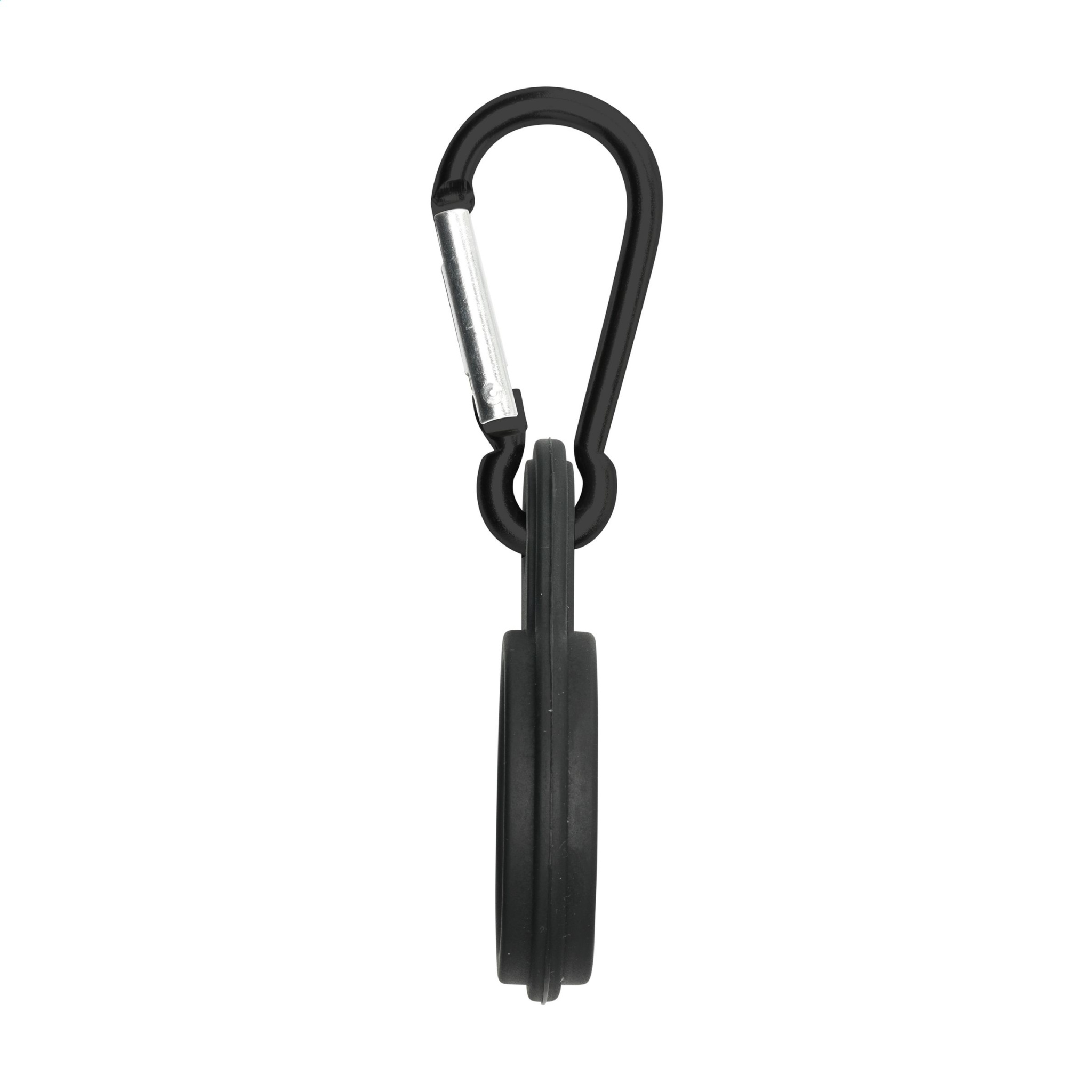 Silikonschlaufe mit Karabiner. Befestige die flexible Schlaufe an deiner Trinkflasche und befestige die Flasche mit dem Karabiner am Rucksack oder der Sporttasche.