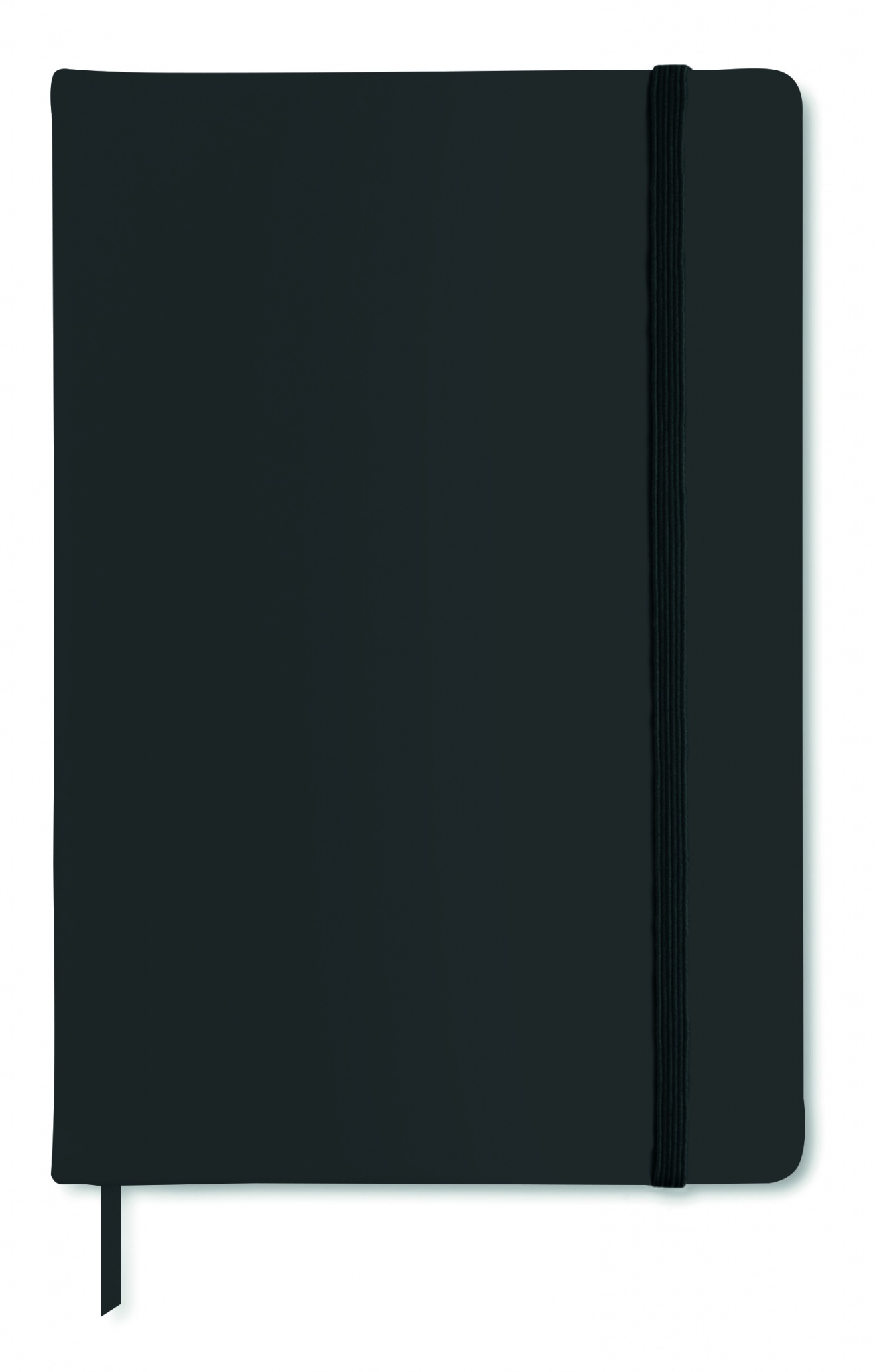 DIN A6 Notizbuch mit Hard Cover aus PU. 96 Blatt (192 Seiten) liniertes Papier. Elastisches Verschlussband und Lesebändchen.