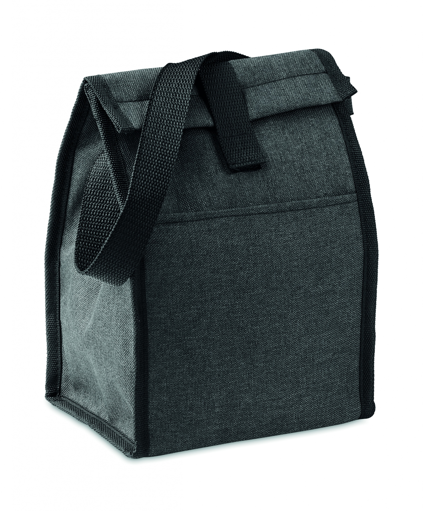Lunch-Tasche aus 600D RPET mit Isolierung. Fronttasche. Fassungsvermögen 3 l. Isoliermaterial: Aluminiumfolie + 2 mm PE-Schaumstoff.