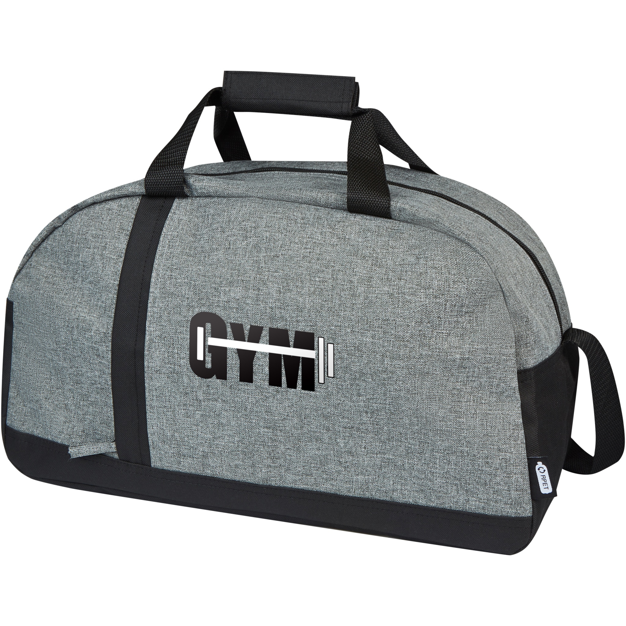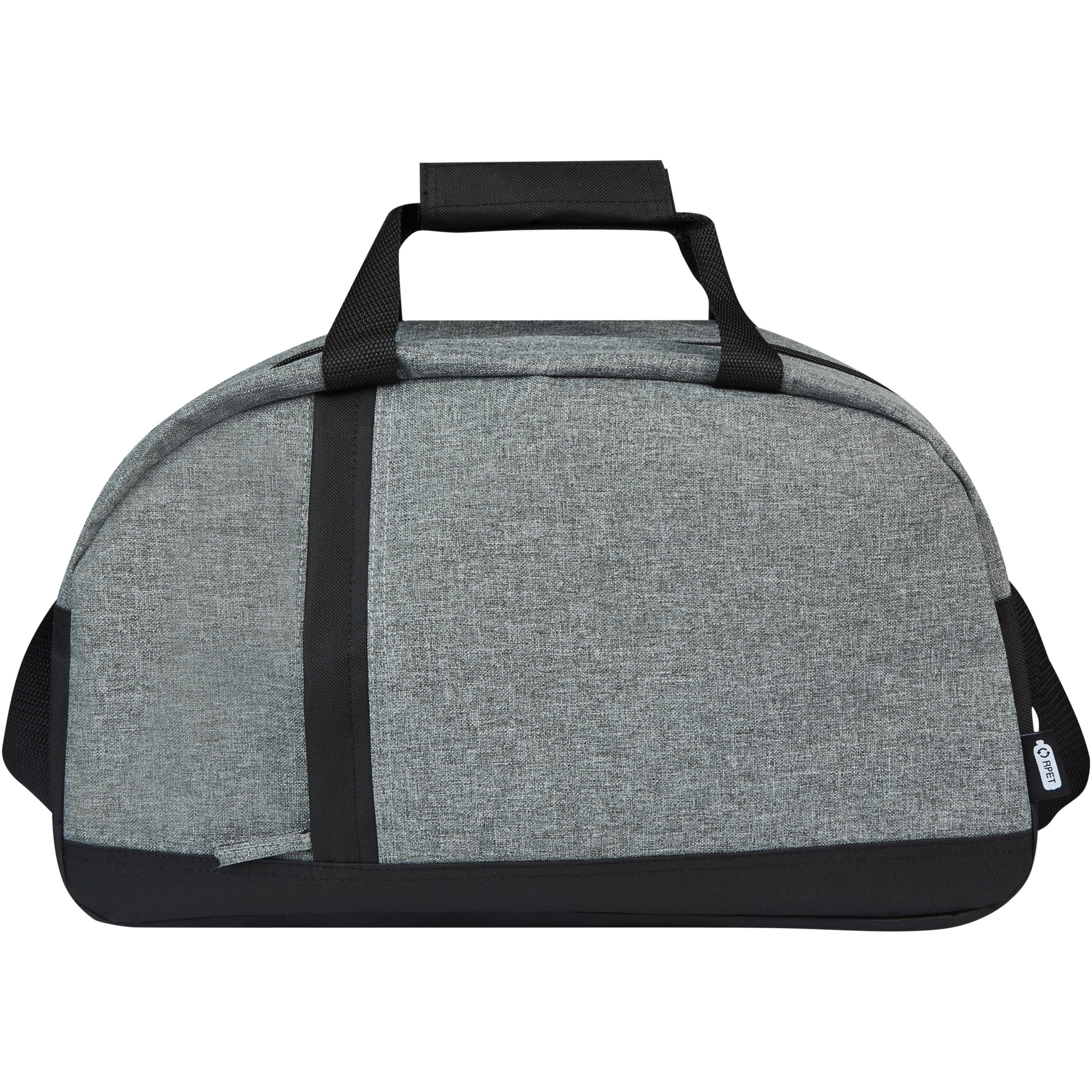 Die Reclaim GRS recycelte zweifarbige Sport-Reisetasche ist außen aus 100 % recycelten Materialien hergestellt und verfügt über eine vertikale Reißverschlusstasche auf der Vorderseite und ein geräumiges Hauptfach mit Reißverschluss. Die mit Gurtband umwickelten Tragegriffe und die verstellbaren Schultergurte sorgen für Tragekomfort und eignen sich für sportliche Aktivitäten.