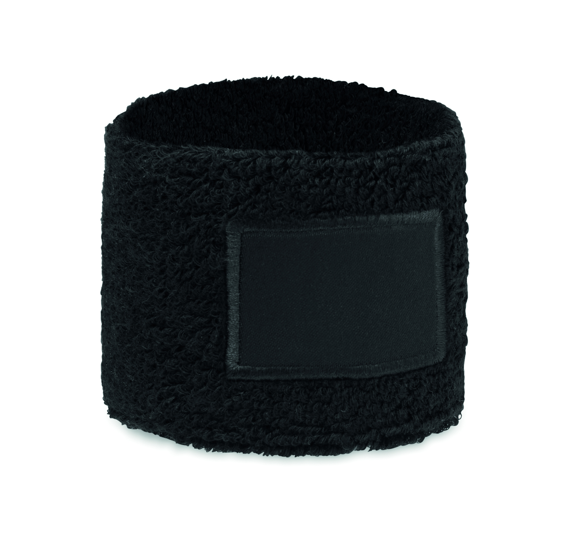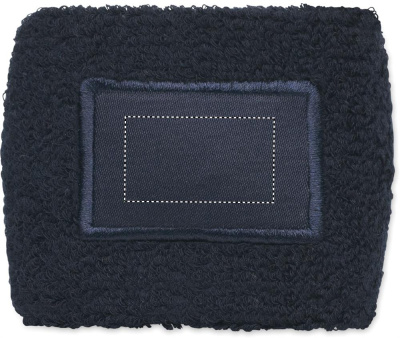 Schweißarmband aus Polycotton (79% Baumwolle/ 13% Elasthan/ 8% Polyester) mit Baumwollpatch.