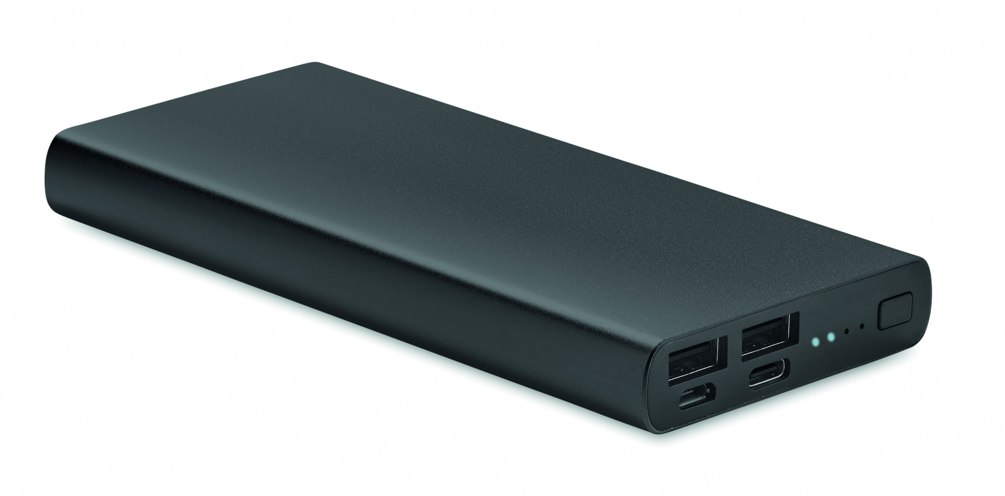 Power bank 10000 mAh in aluminium. Capacity for smartphone use, output current DC5V/1A and DC5V/2A . Includes indicating light and USB cable with micro usb plug. Supports quick charging technology (18W). In/Output: Type-C. Power delivery (PD) support to charge the newest laptop MacPro®.
