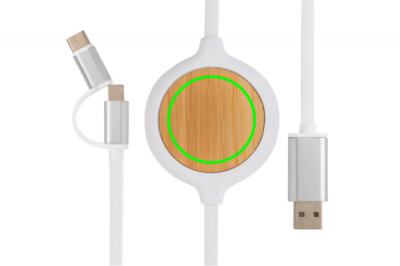 Logo trade promotional product photo of: 3-in-1 cable with 5W bamboo wireless charger