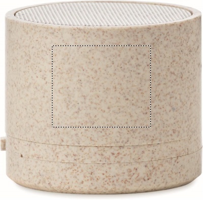 5.0 wireless speaker in wheat straw (35%) and ABS(65%) and LED light indication. 1 Rechargeable Lithium 300 mAh battery included. Output data: 3W, 3 Ohm and 5V. Playing time approx. 2h.