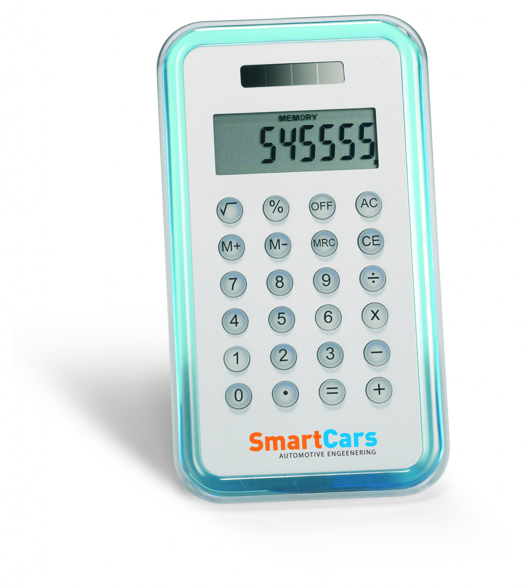 8 digit dual power calculator with aluminium front cover. 1 cell battery included.