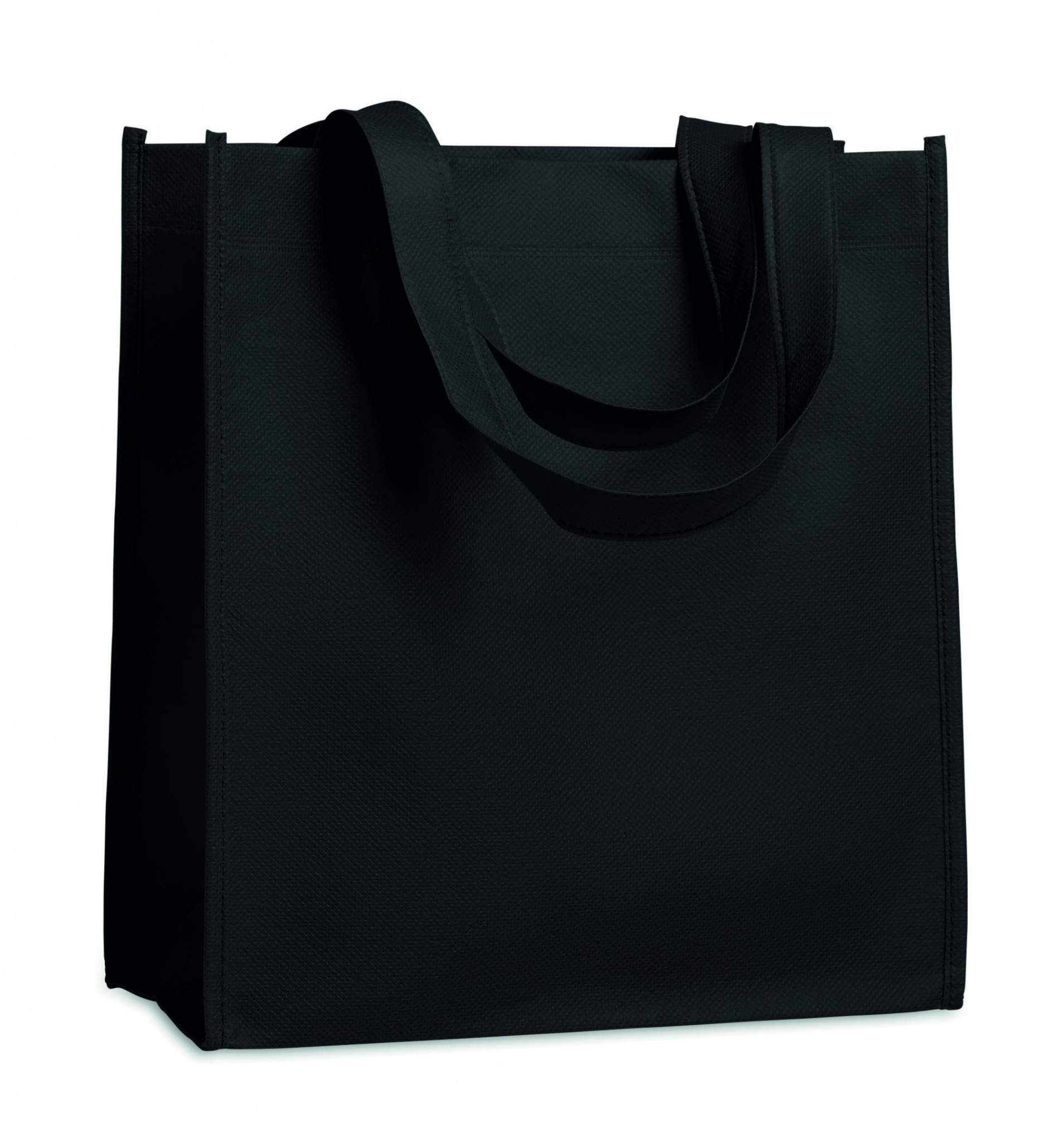 Nonwoven heat sealed shopping bag with short handles. 80 gr/m².