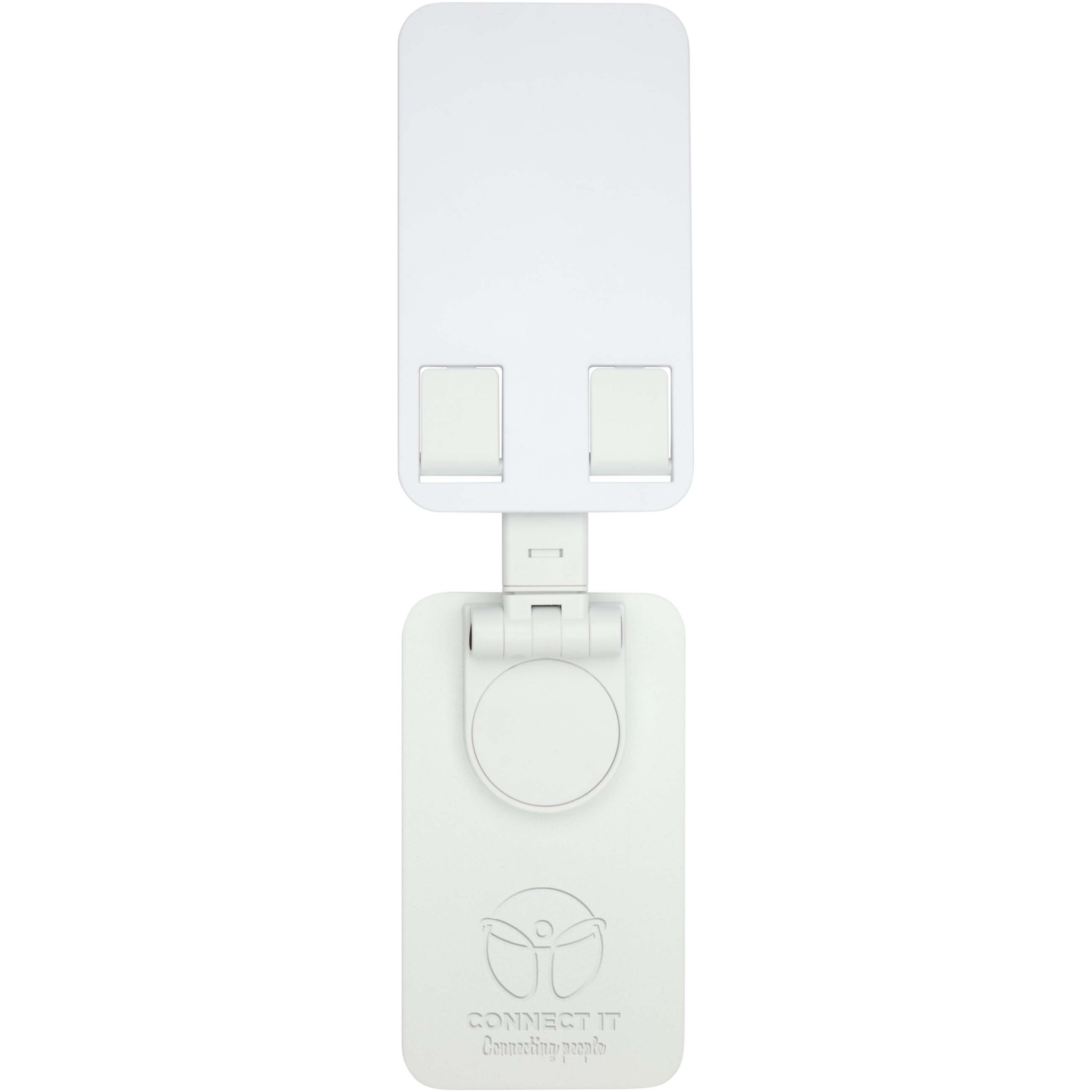 Alhena recycled plastic foldeable phone holder with metal desk stand, White