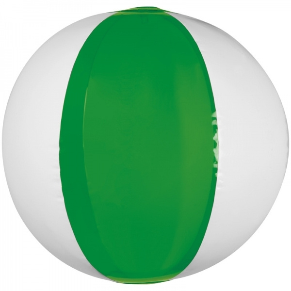 Trendy beach ball with colored transparent and white segments. We print your logo on a segment.