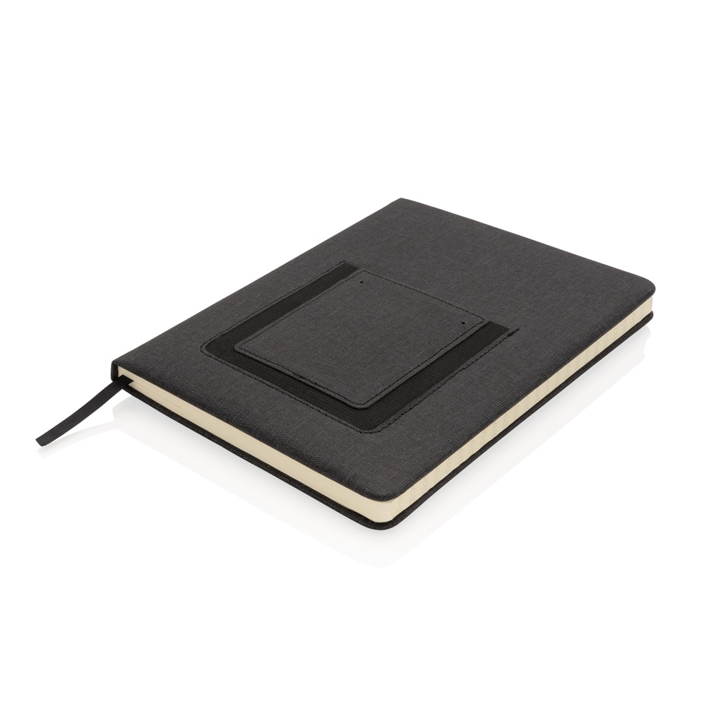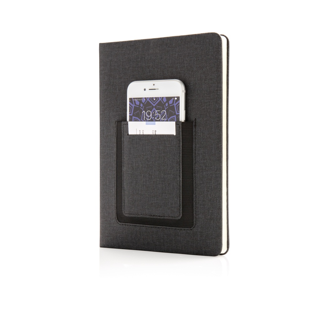 Deluxe A5 Notebook with phone pocket, black