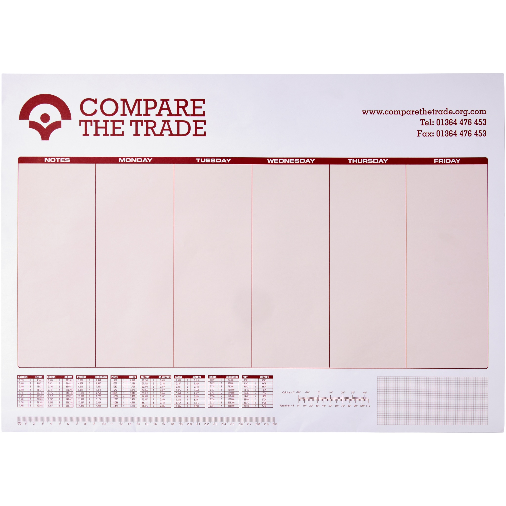 White A3 Desk-Mate® notepad with 80 g/m2 paper. Full colour print available to each sheet. Available in 3 sizes (25/50/100 sheets).