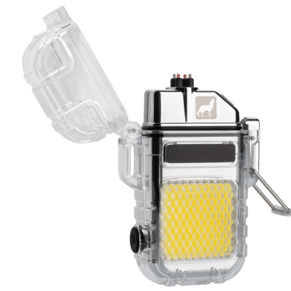 Electrical rechargeable lighter with a COB flashlight. The lighter works on the basis of electric discharge instead of a flame. The flashlight has a three different modes of lighting. It is charged via a USB cable that is included in the package. The charging time of lighter is 1–2 hours and full lighter lasts approximately one week or after 100–200 sparks.