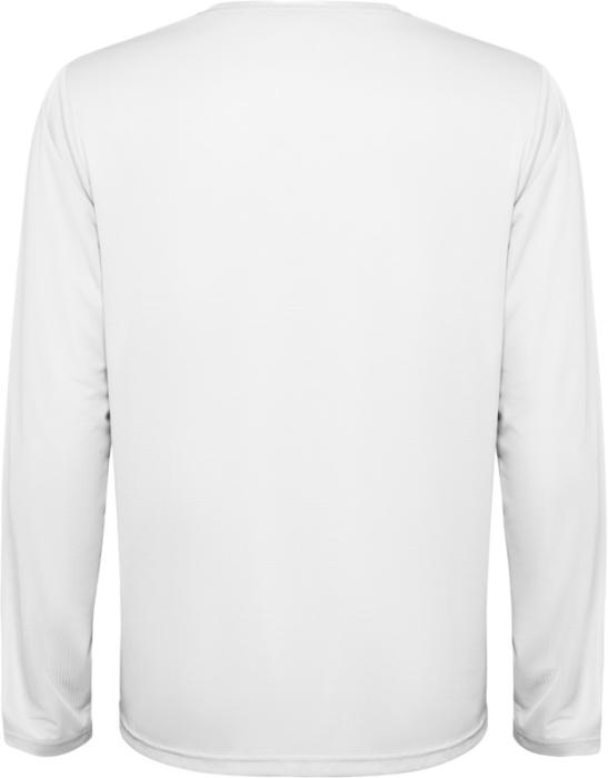 Long-sleeve unisex technical t-shirt. Collar with matching seams. Back hem slightly longer than the front. Side seams shifted forward.