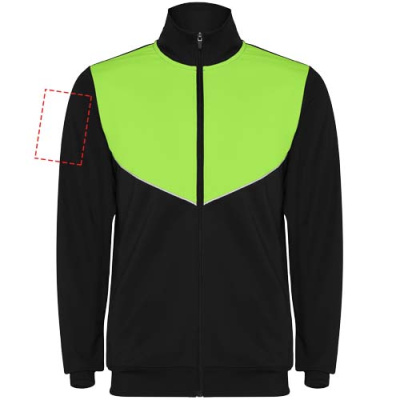Tracksuit in lightweight and elastic fabric. Jacket with contrasting colour and sewing trims on the chest. High collar with contrasting seams. Center front zip. Side pockets. 2x2 ribbed cuffs and waist. Trousers with elastic waistband and drawstring. Contrasting side piece with sewing trim. Zipped hem.