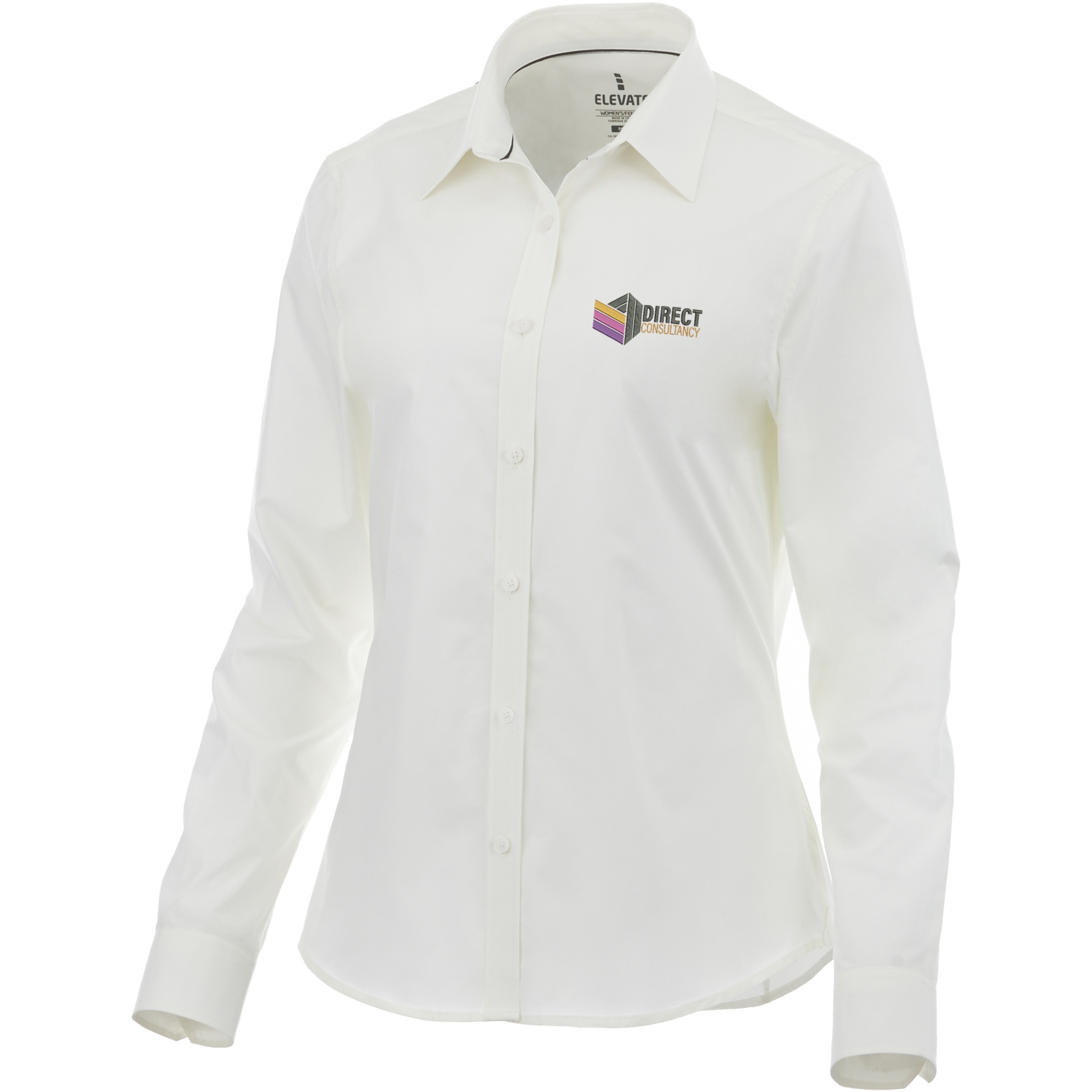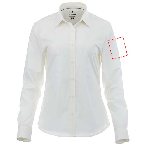 The Hamell long sleeve women's stretch shirt – an ideal combination of style and comfort. This woven shirt features a lightweight poplin fabric of 97% cotton and 3% elastane. Poplin fabric is known for its tight weave, which provides exceptional durability while maintaining a soft and smooth texture against the skin. This means that the Hamell shirt is not only comfortable to wear but also resistant to everyday wear and tear, ensuring long-lasting use. The added stretch provides ultimate freedom of movement, ensuring optimal comfort throughout the day even more. Its hidden button-down collar adds sophistication while maintaining a clean look. This shirt is designed with a fitted shape for a feminine look.
