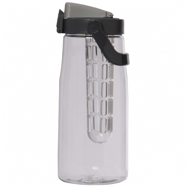 Large drink dispenser made of plastic with lockable spout, carrying handle,sieve insert for e.g. fruits, and 2500 ml capacity. We will print your logo on the lower area of the bottle.