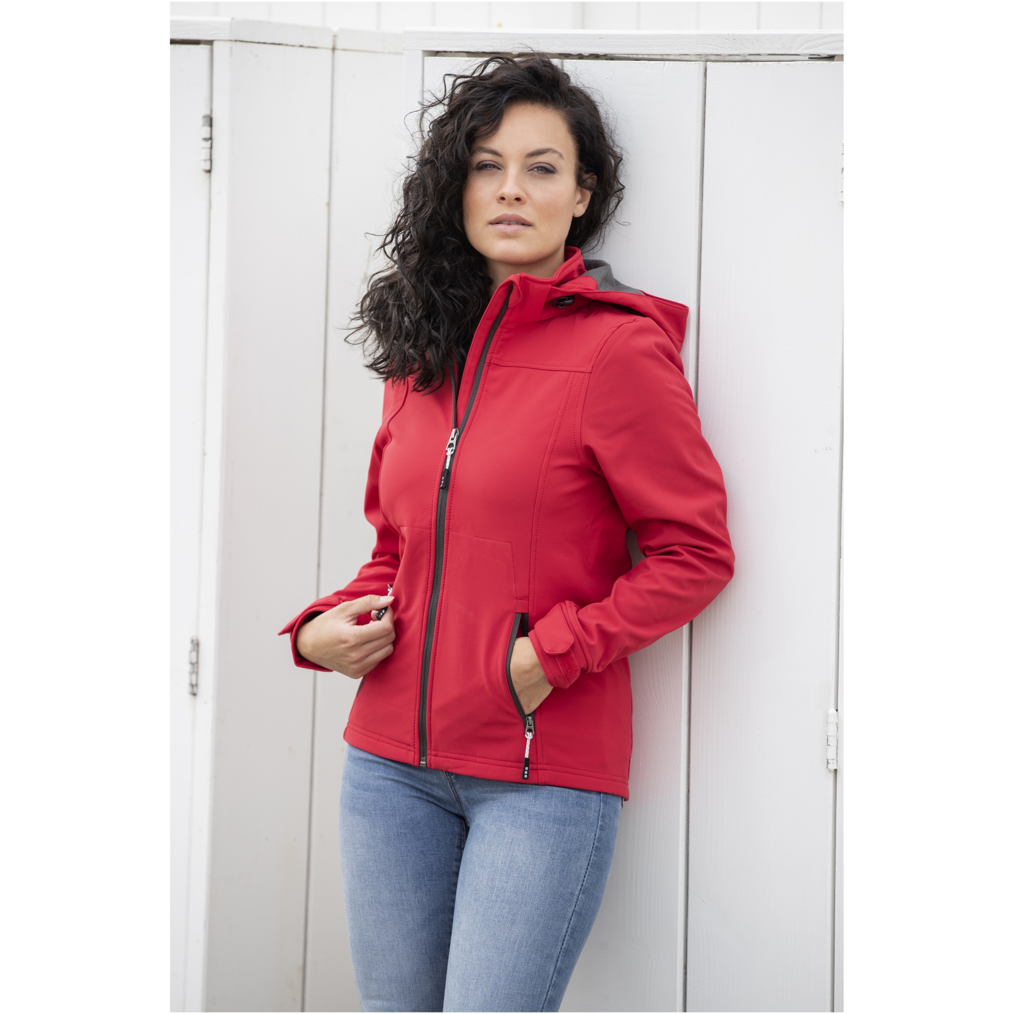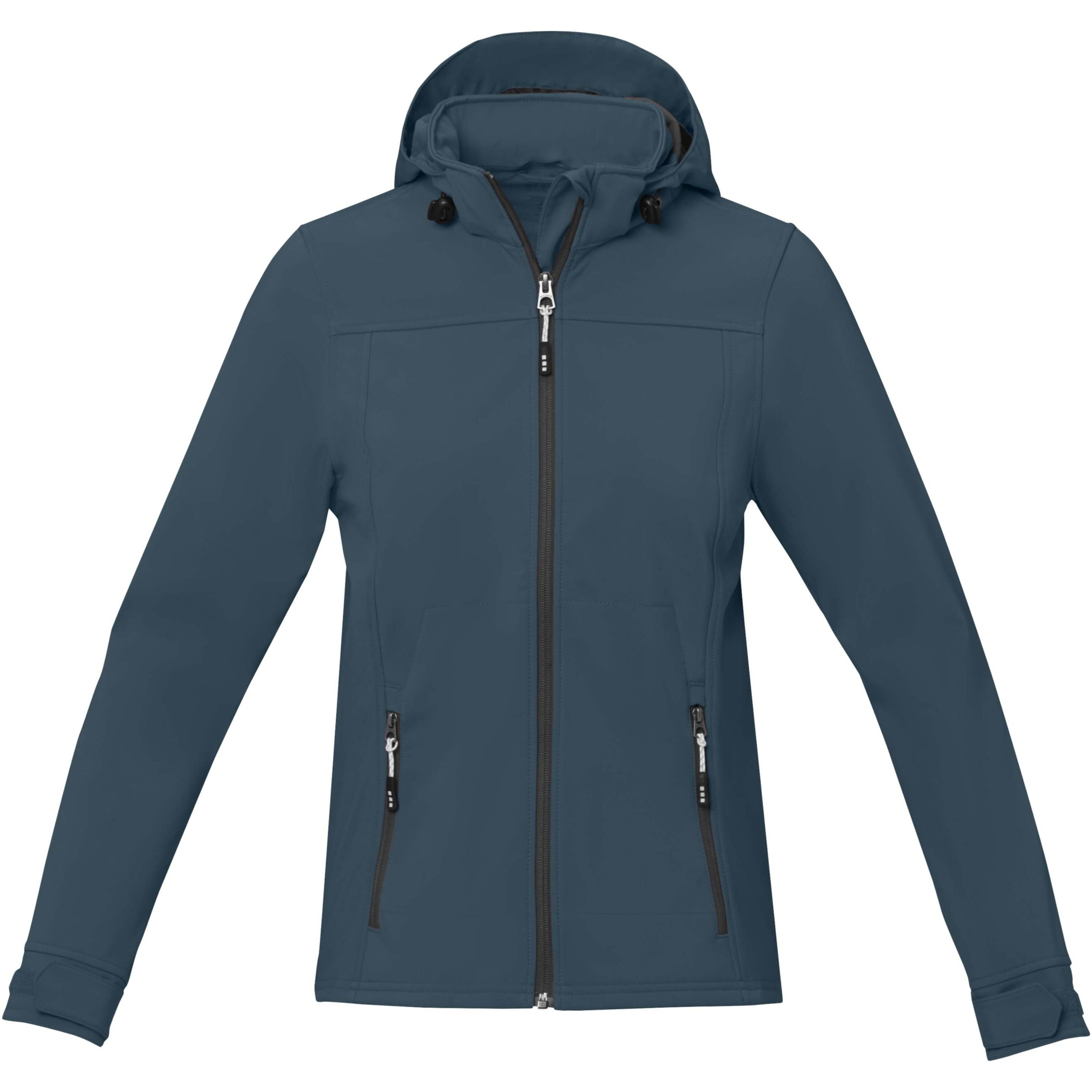 The Langley women's softshell jacket – for ultimate outdoor performance. The jacket has a waterproof rating of 5000 mm, keeping you dry and shielded from the elements. Its exceptional breathability, with a rating of 3000 g/m², wicks away moisture, keeping you comfortable during intense activities. Enjoy unrestricted movement with the four-way stretch fabric, combining polyester and elastane (300 g/m²) designed to flex and adapt to your body's every motion. The bonded inner layer features a micro fleece made of polyester, complemented by TPU lamination, which enhances the jacket's insulation and warmth and protection to any type of weather. The detachable hood adapts to various weather conditions, while the adjustable cuffs with hook and loop closure guarantee a tight and comfortable fit. The elastic drawstring with an adjustable cord lock allows to tailor the jacket to any preference. With the inclusion of secure hand pockets with zippers, you can keep your essentials close at hand during any adventure. Be ready to take on any adventure in style, comfort, and confidence with the Langley softshell jacket. This jacket is designed with a fitted shape for a feminine look.