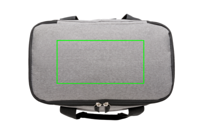 600D two-tone polyester large cooler bag can store up to 20 cans. With 2 mesh side pockets and 1 front pocket.