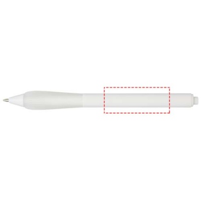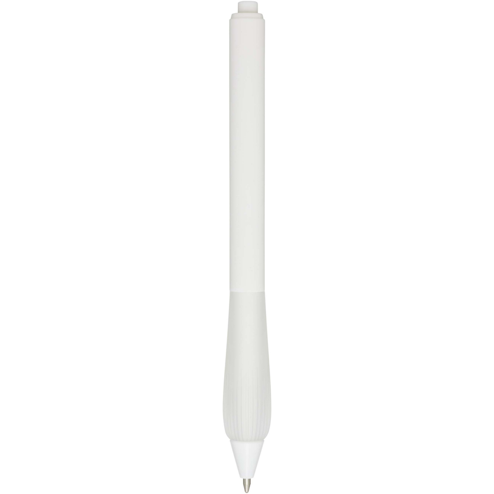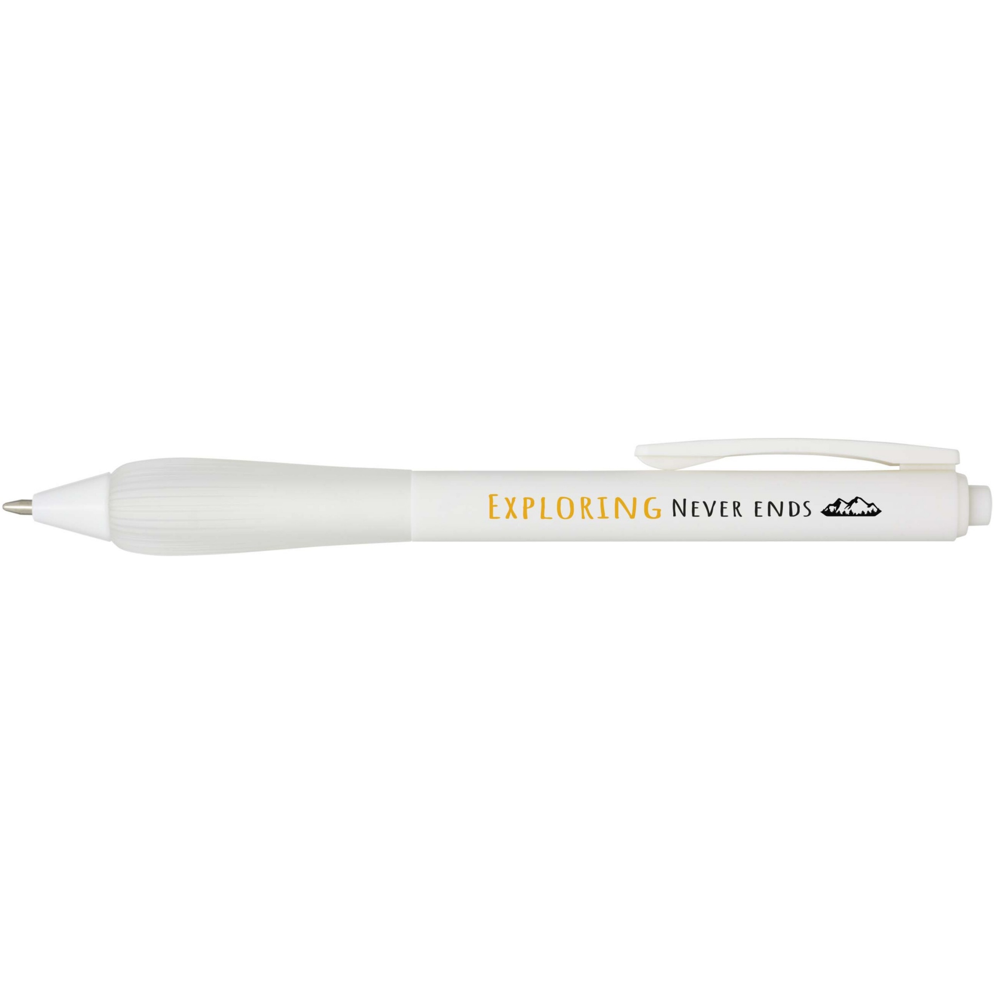Recycled plastic ballpoint pen with a rubberized barrel, and grip made of TPR. Ink colour: Black. Writing length: 1000 metres. Nib size: 1.0 mm.