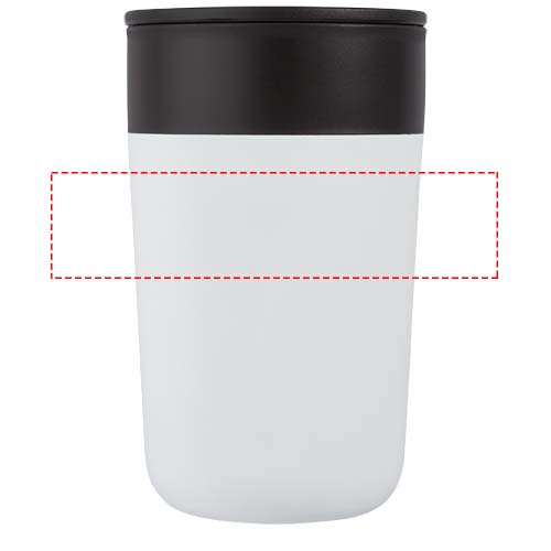The stylish Nordia mug is constructed with stainless steel exterior and sustainable recycled PP interior. The inner lid, slider, and handle are also made of recycled PP from certified and responsible sources. The lid has a sliding closure, making this mug perfect for enjoying your drinks on-the-go. BPA-free and tested and approved under German Food Safe Legislation (LFGB), and tested for phthalates content according to REACH regulations. Volume capacity is 400 ml. Hand wash recommended.