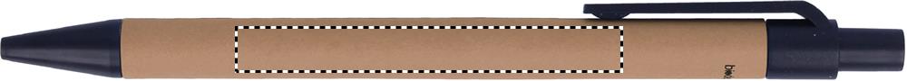 Recycled paper notebook with pen. Twin-wire. 140 plain recycled paper pages (70 sheets). Push button ball pen in recycled carton and biodegradable plastic. Blue ink. Black elastic pen holder.