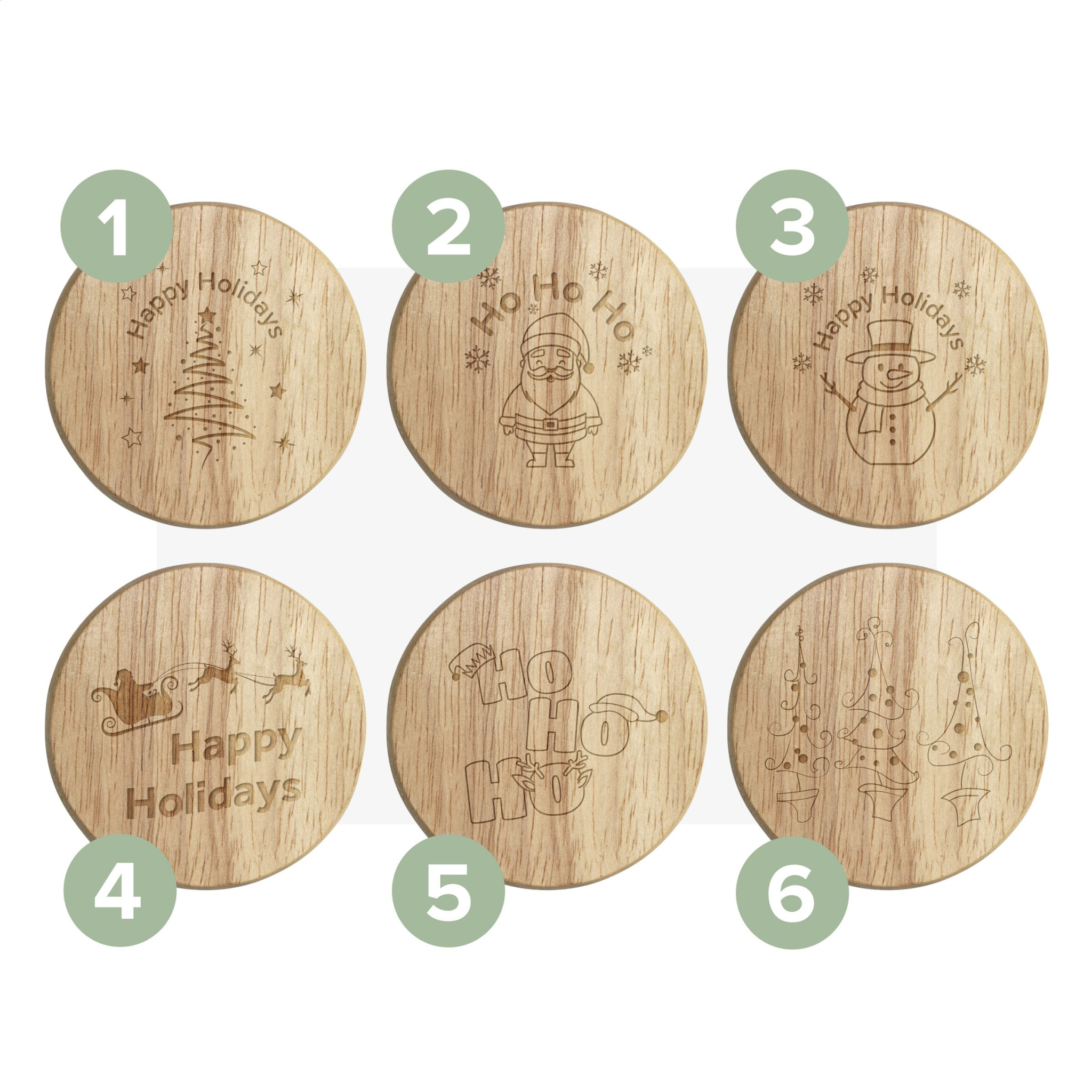 Circular beech wood bottle opener. - This product is printed with a standard Christmas design. Choice of 6 different designs as shown in the images. It is not possible to customize a design.