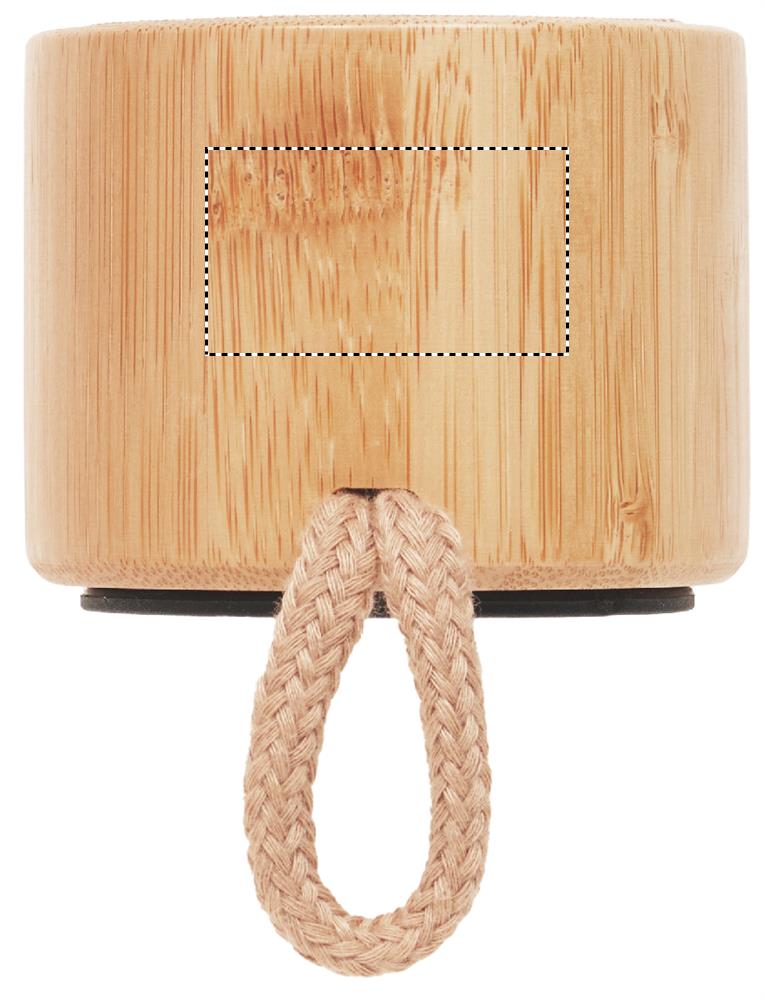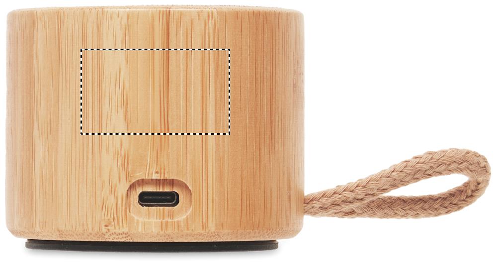 5.1 wireless speaker in ABS with bamboo casing, cotton on top and hanging loop. 1 Rechargeable Li-POL 300 mAh battery included. Includes an SD card port and an AUX/ USB cable. Output data: 3W, 3 Ohm and 5V. Playing time approx. 3h. Bamboo is a natural product, there may be slight variations in colour and size per item, which can affect the final decoration outcome.