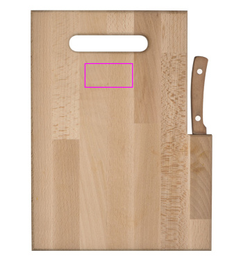 Excellent duo! Wooden board made of beech with integrated knife. We apply your logo on the board by means of laser engraving.