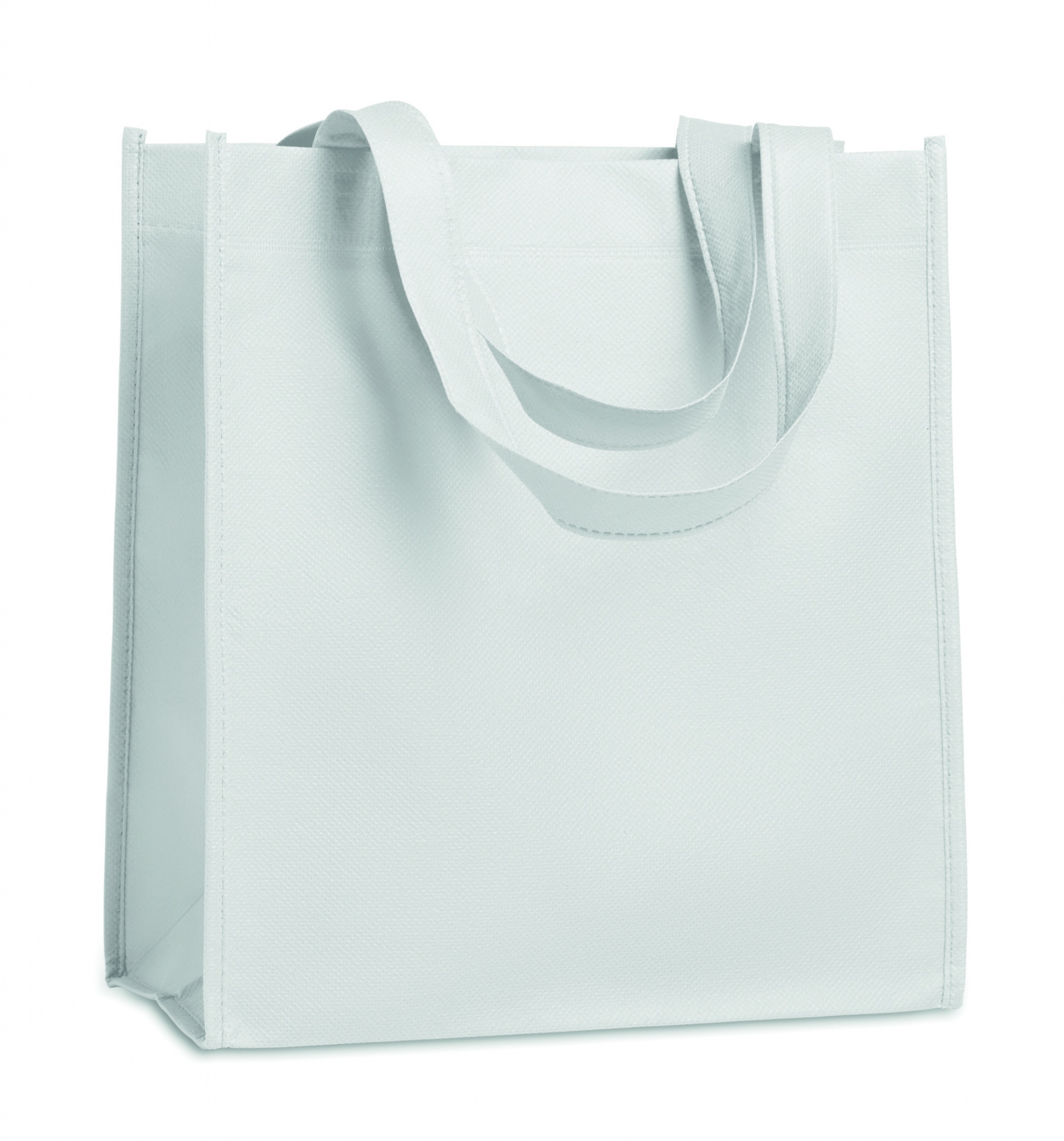 Lausriidest kuumtihendatud lühikeste sangadega ostukott. 80 gr/m².