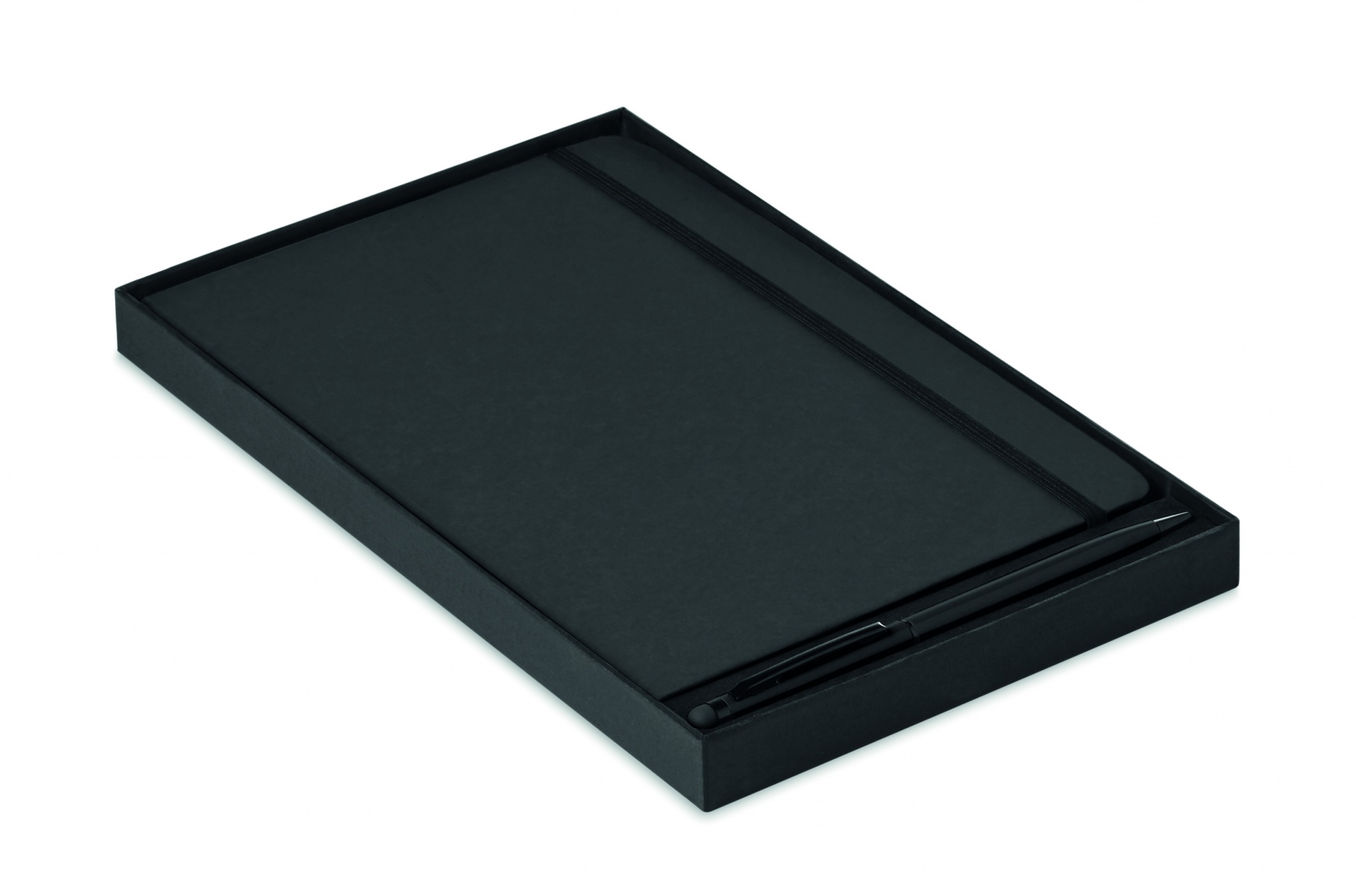 2-ühes pastapliiatsiga A5 märkmik. Kõva PU kate. Casebound. 144 joonelist lehte (72 lehte). Sobiv pastapliiats puutetundliku ekraaniga pliiatsiga. Sinine tint. Kokkusobiv elastne sulgemisrihm ja paelaga järjehoidja.