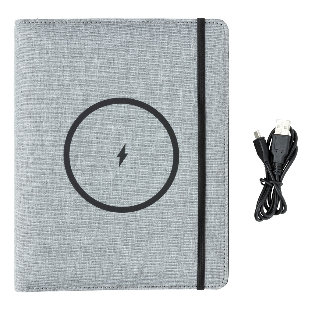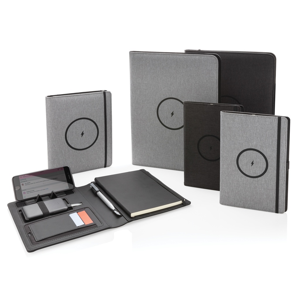 See märkmiku kaas võimaldab teil koosolekuid stiilselt pidada. Esikaanel on juhtmevaba laadimisalus teie nutitelefoni jaoks. (Androidi uusimad põlvkonnad, iPhone 8 ja uuemad). Vanemaid telefone ja tahvelarvuteid saab laadida USB-portide kaudu välise 5000 mAh toitepangaga. Sisend: 5,0V/2,1A. Väljund 1: 5,0V/2,1A. Väljund 2: 5,0 V/2,1 A. Juhtmeta väljund: 5 W. Registreeritud disain®