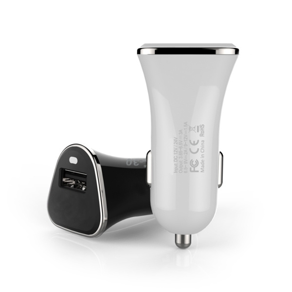 Ideaalne lisavarustus igale autole. Selle USB-laadijaga saate hõlpsalt laadida kõiki praeguseid nutitelefone ja palju muud. Ühendage lihtsalt oma auto sigaretisüütajaga. USB-port võimaldab teie nutitelefoni kiiresti laadida tänu Qualcomm Quick Charge QC3.0-le. Kiibilahendused: Qualcomm QC3.0 sisend: 12–24 V väljund: 3,6–6,5 V/3A või 6,5–9 V/2A või 9–12 V/1,5 A