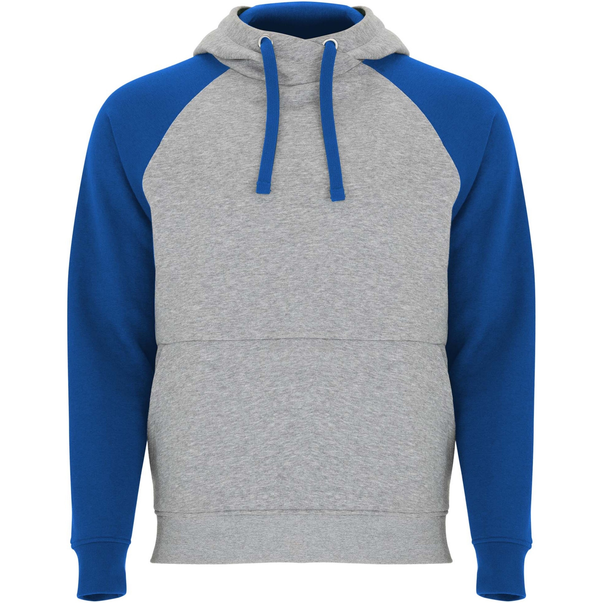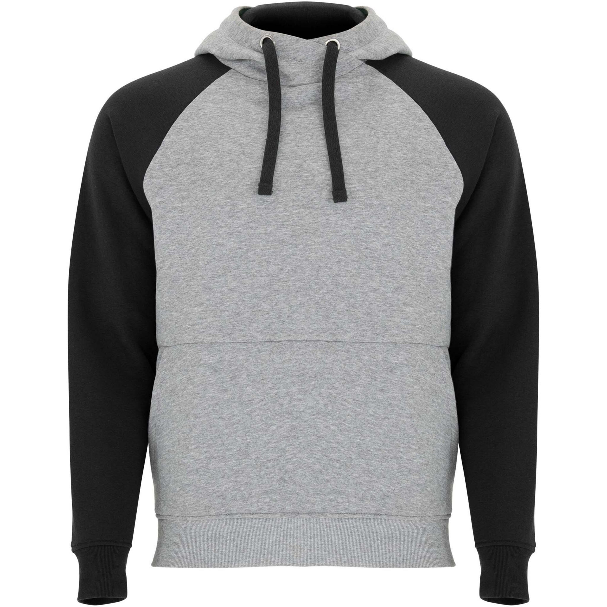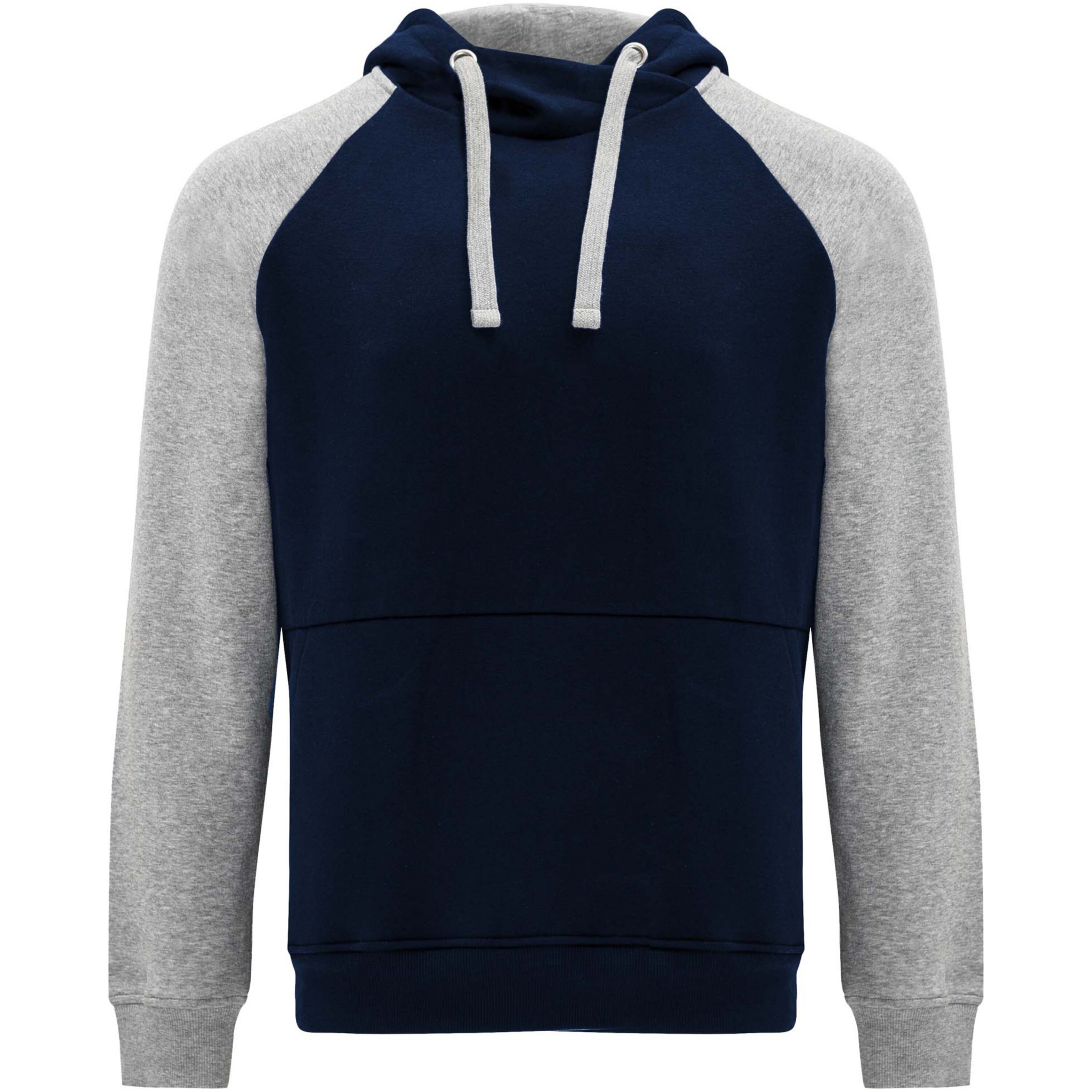 Kahevärviline unisex kapuuts. Ristkaeluse ja metallaasadega kapuuts. Kontrastne sisemine kapuuts, nöör ja raglaanvarrukad. Känguru tasku. Kätised ja alläär 1x1 elastaanist soonikust. Eemaldatav etikett.