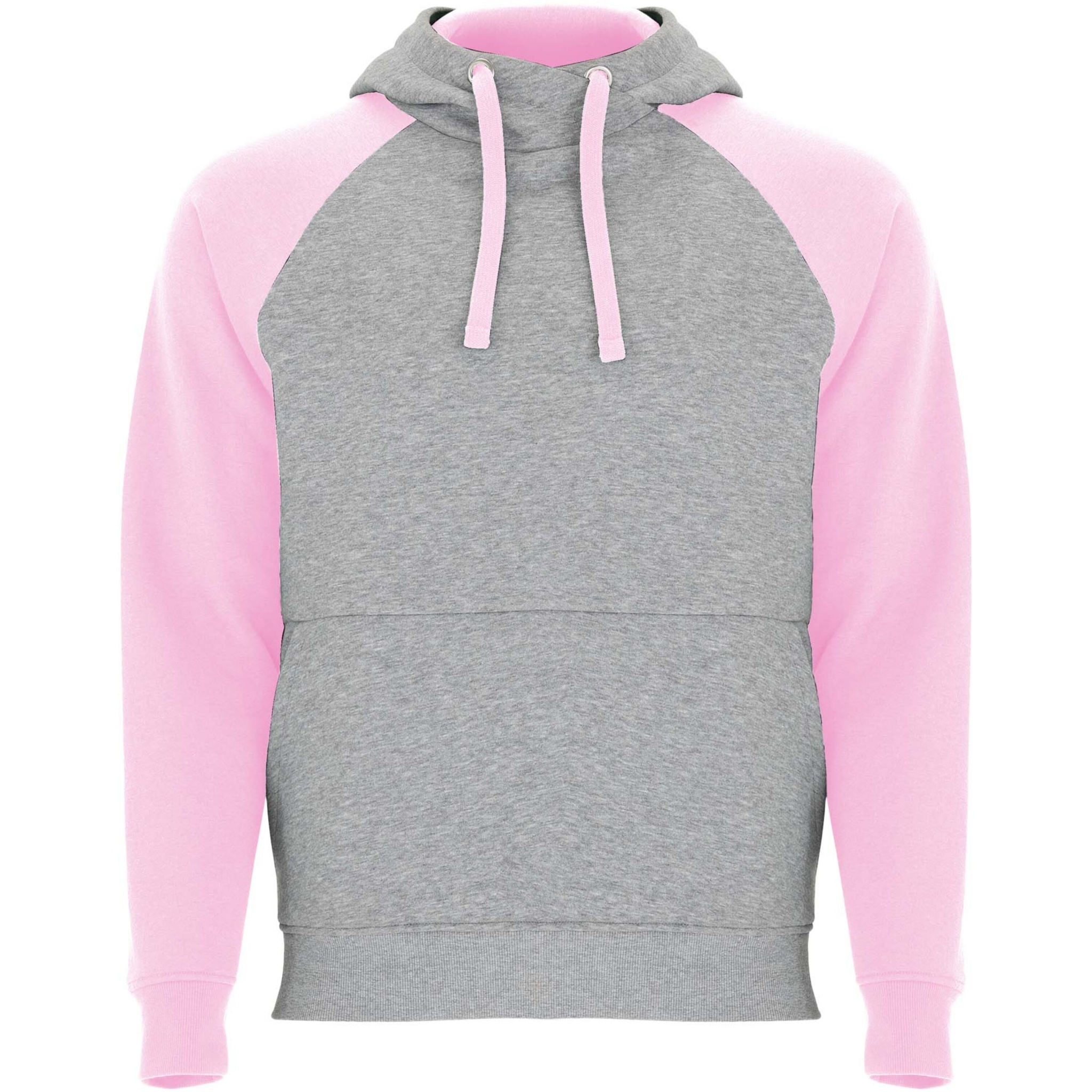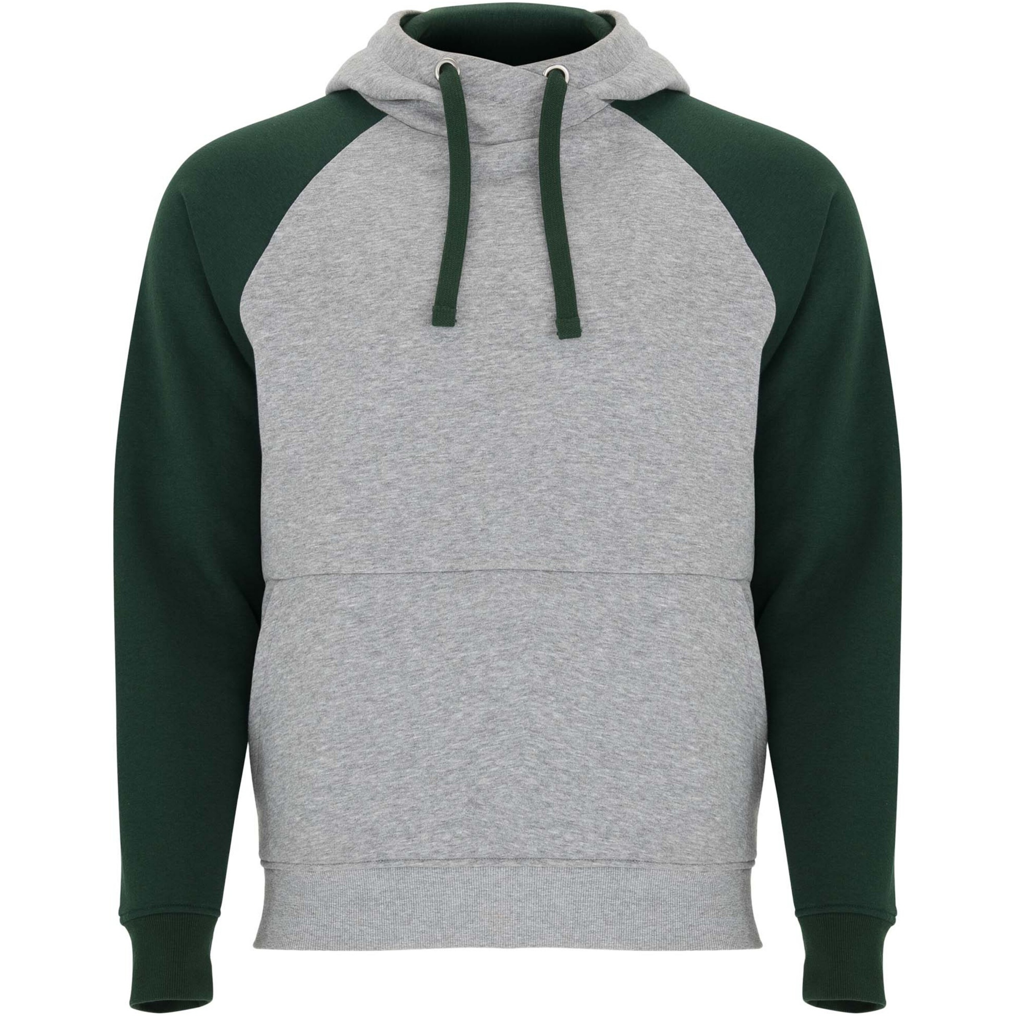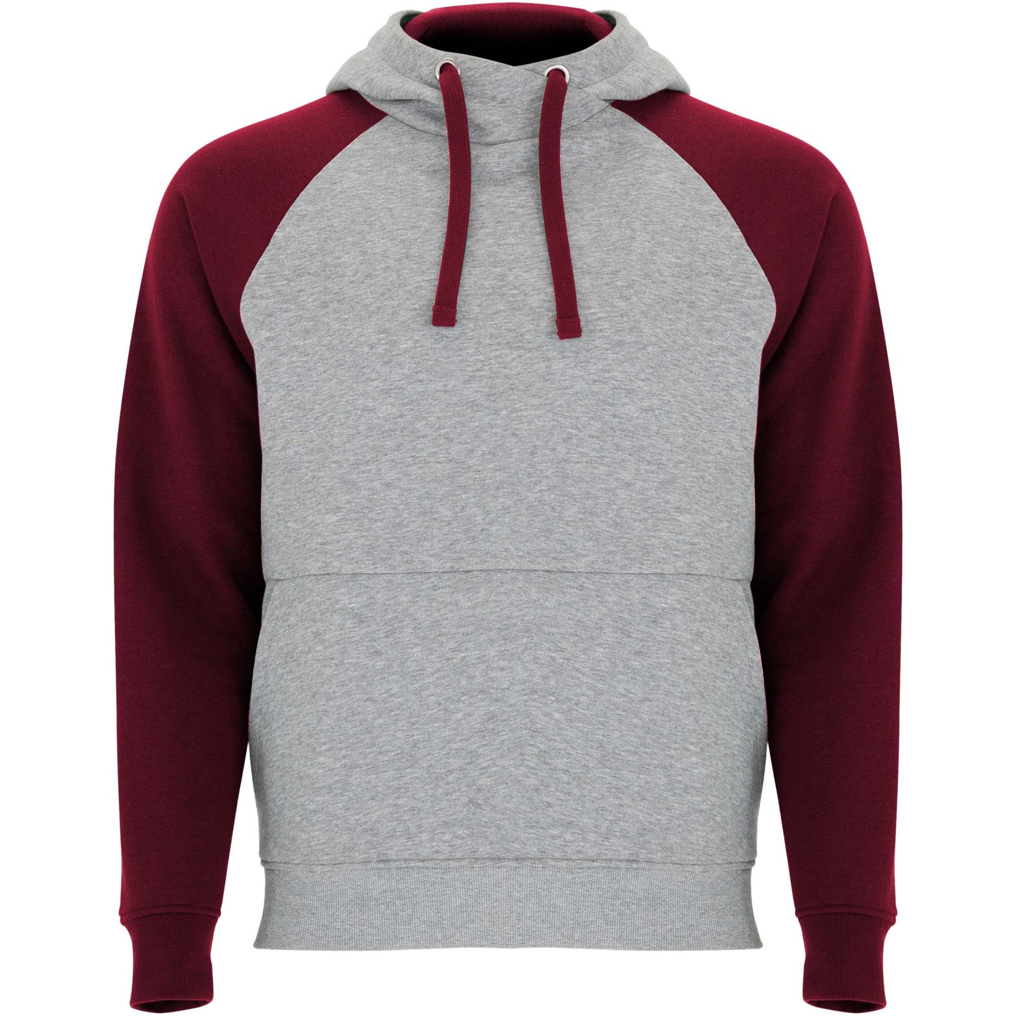 Kahevärviline unisex kapuuts. Ristkaeluse ja metallaasadega kapuuts. Kontrastne sisemine kapuuts, nöör ja raglaanvarrukad. Känguru tasku. Kätised ja alläär 1x1 elastaanist soonikust. Eemaldatav etikett.