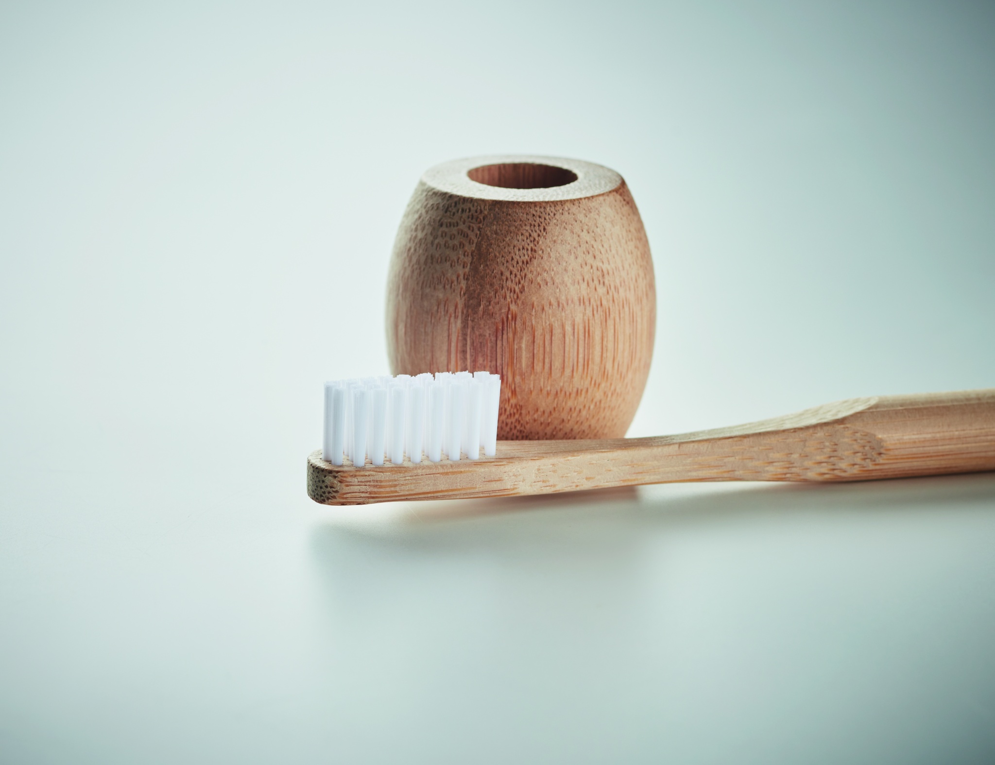 Logotrade firmakingituse foto: Bambusest hambahari koos alusega