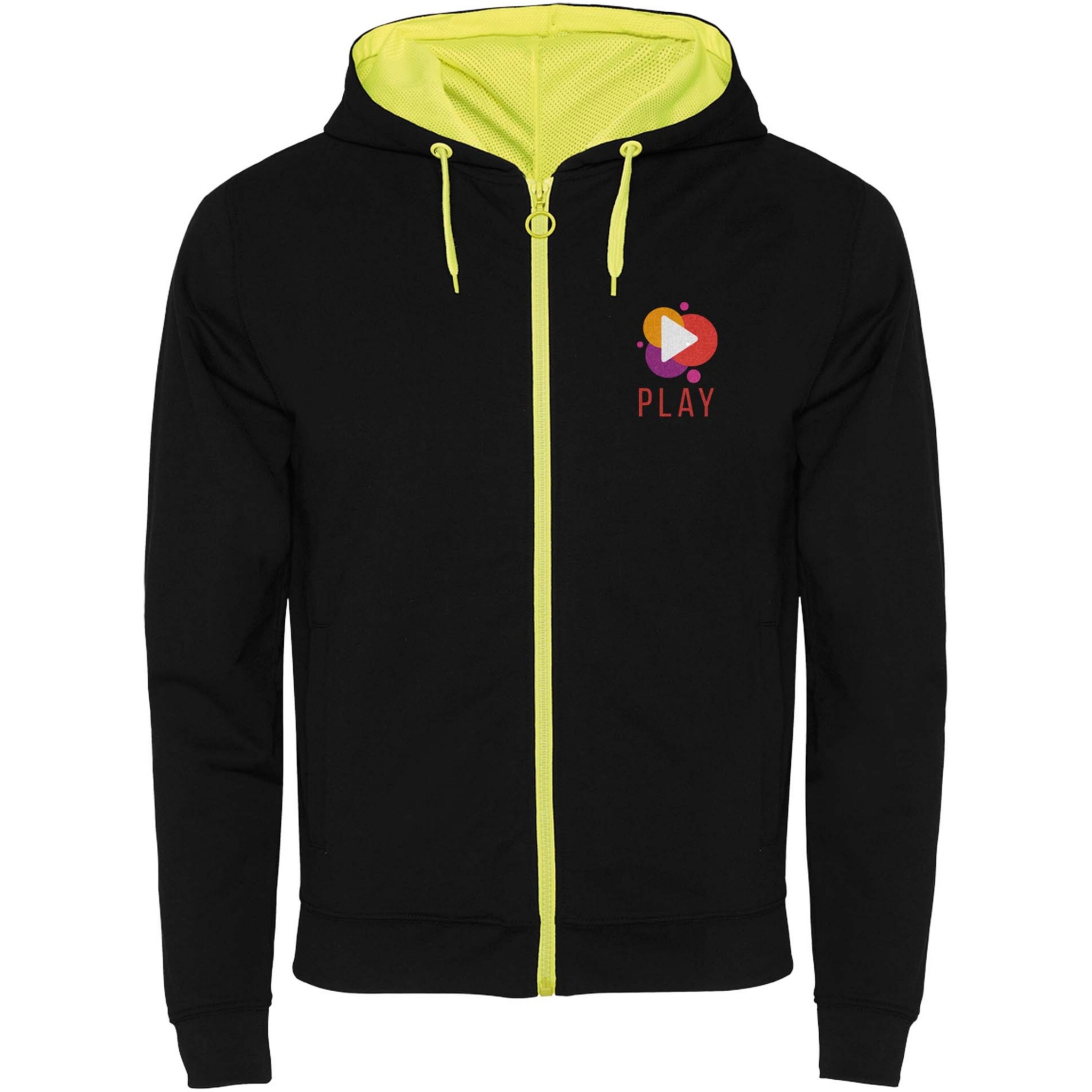 Fluorvärvi detailidega harjamata fliisist jope. Keskne tõmblukk kontrastse tõmmitsaga. Kapuuts voodriga mikroperforeeritud polüesterkangast ja kontrastset fluorivärvi. Kontrastset fluorivärvi nöör ja metallist aasad. 1x1 soonik varrukatel ja vöökohal. Kaks laia äärega esitaskut. Sisekrael tugevdatud kaetud õmblused. Eemaldatav etikett.