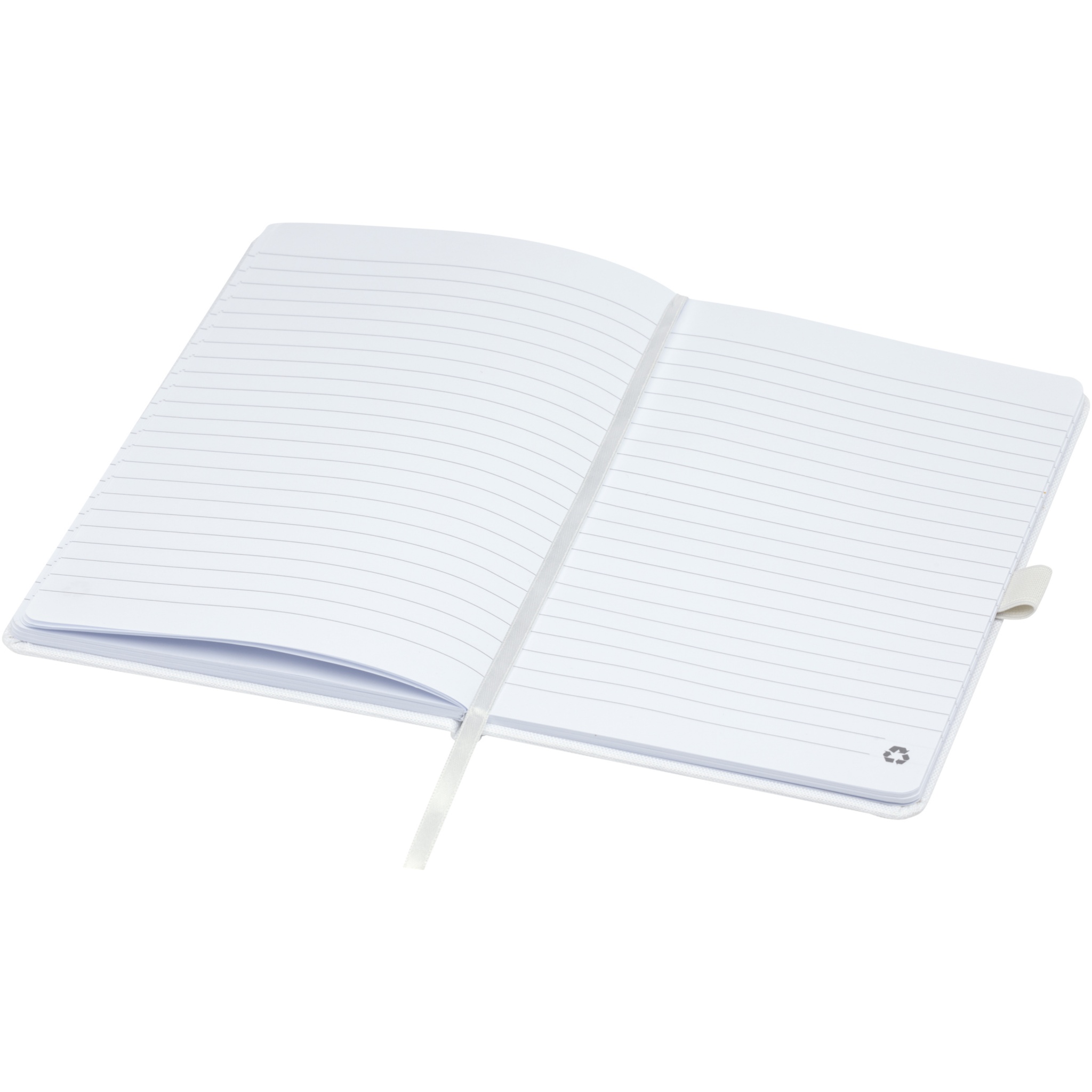 RPET kangast kaanega A5 märkmik. Sisaldab 80 lehte 70 g/m2 vooderdatud küljenduse, pliiatsisilmuse ja lindimarkeriga taaskasutatud paberit. Saab kombineerida 107757 Honua RPET pastapliiatsiga.