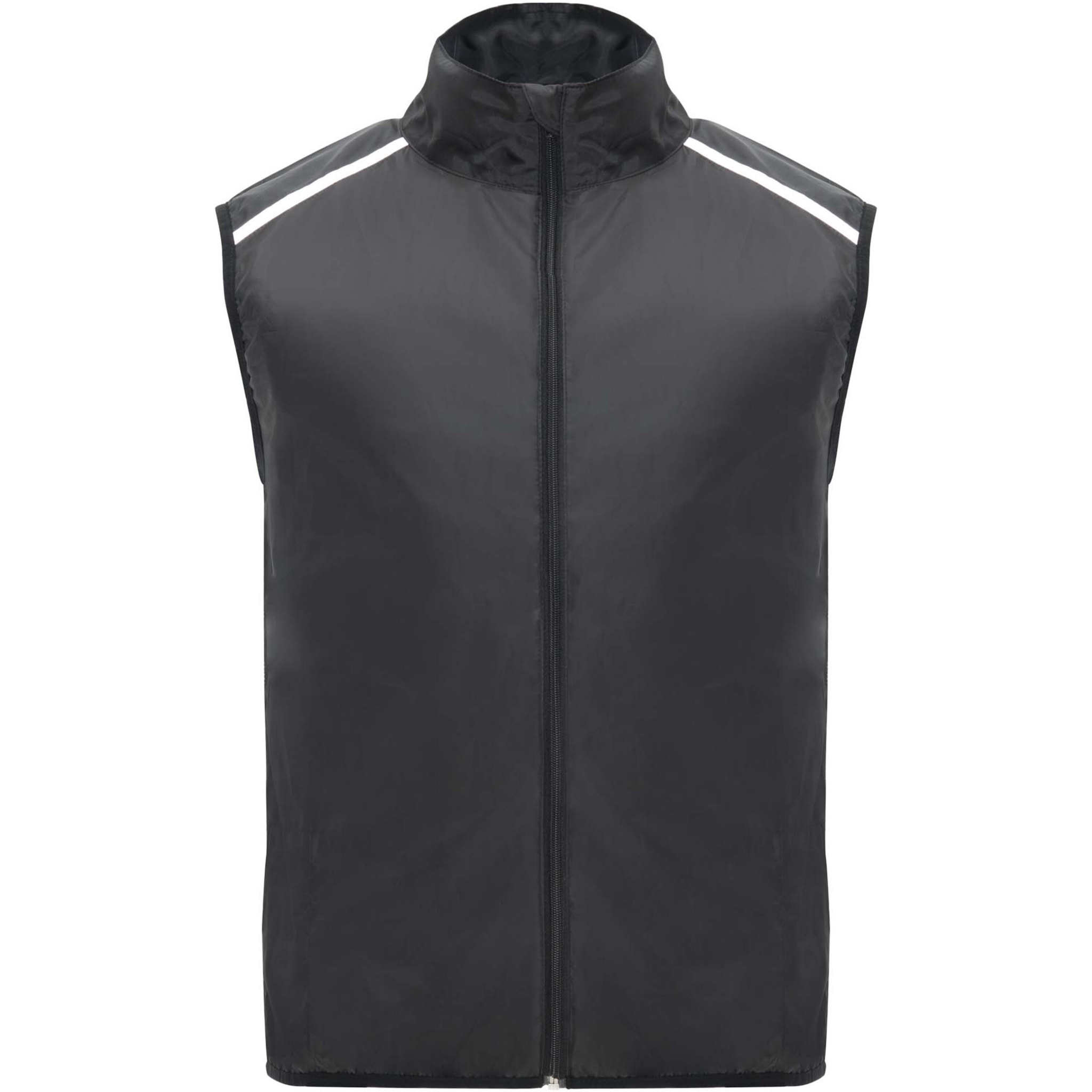 Tuulekindel ja hingav. Ees tõmblukk koos sobiva lõuakaitsega. Elastne side käeaugus ja allosas. Seljaosa alumine osa mikroperforeeritud kangast. Hästi nähtavad detailid peal, ees ja taga. Elastse rihmaga tasku vesti hoidmiseks ja randmel kandmiseks. Eemaldatav etikett.