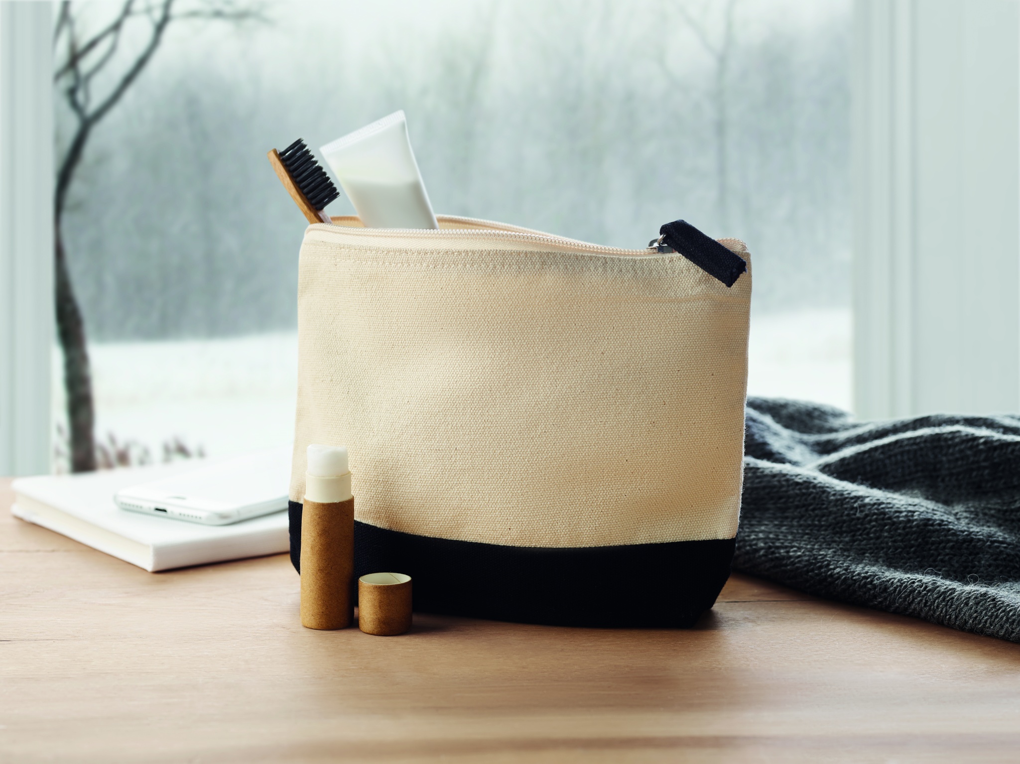 Kahevärviline puuvillane kosmeetikakott, Must