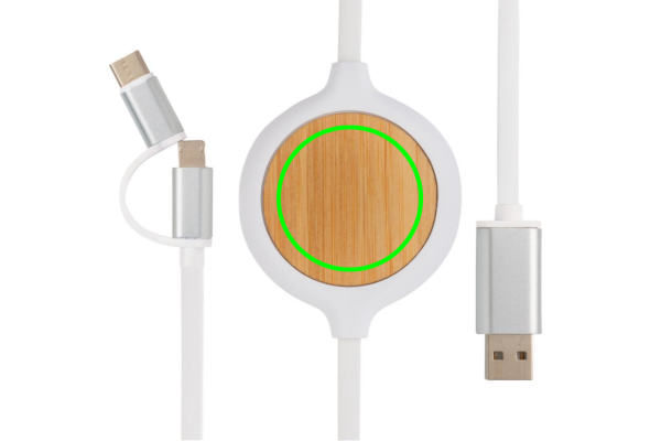 Logotrade ärikingitused pilt: Kolm-ühes kaabel 5W bambusest juhtmevaba laadijaga