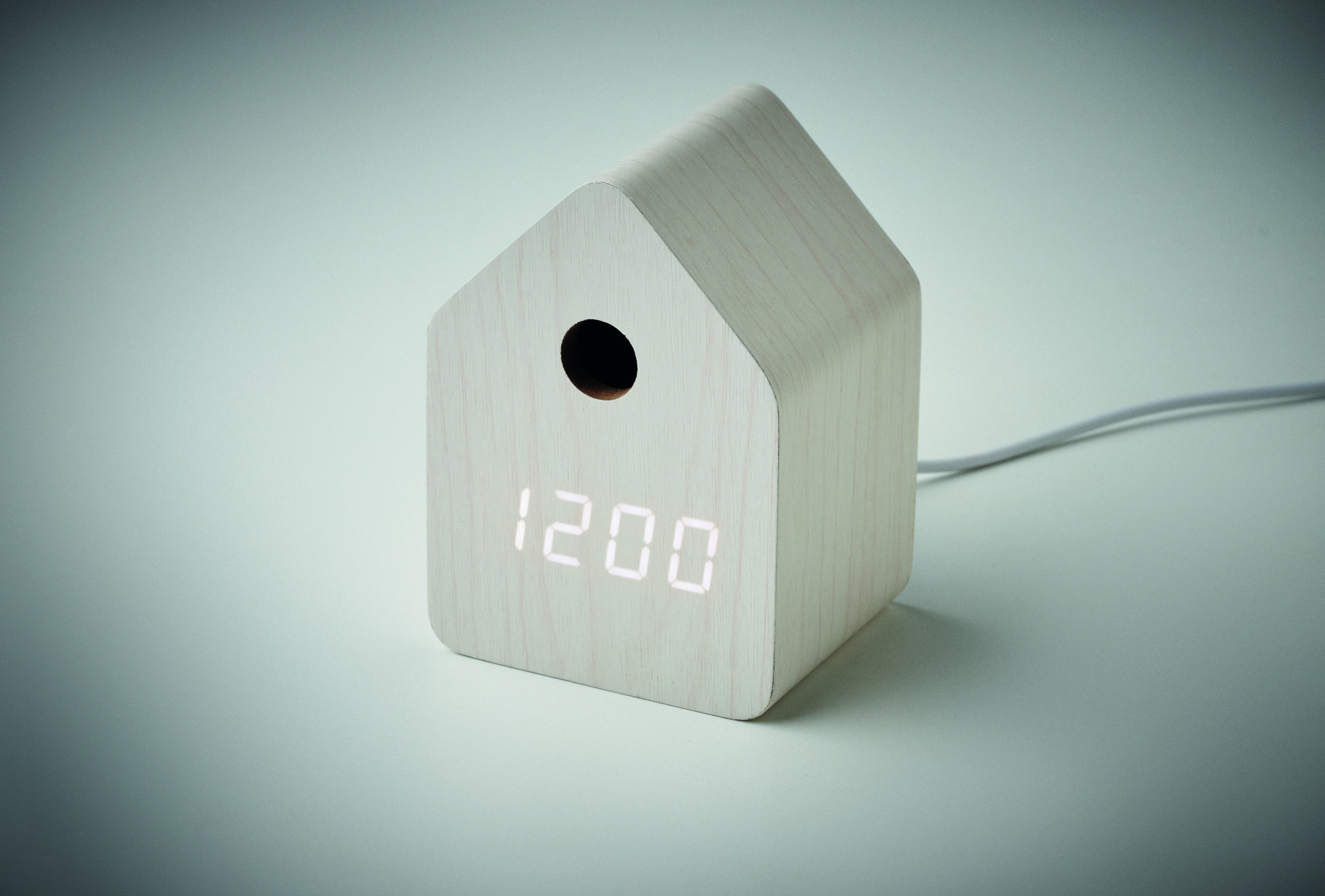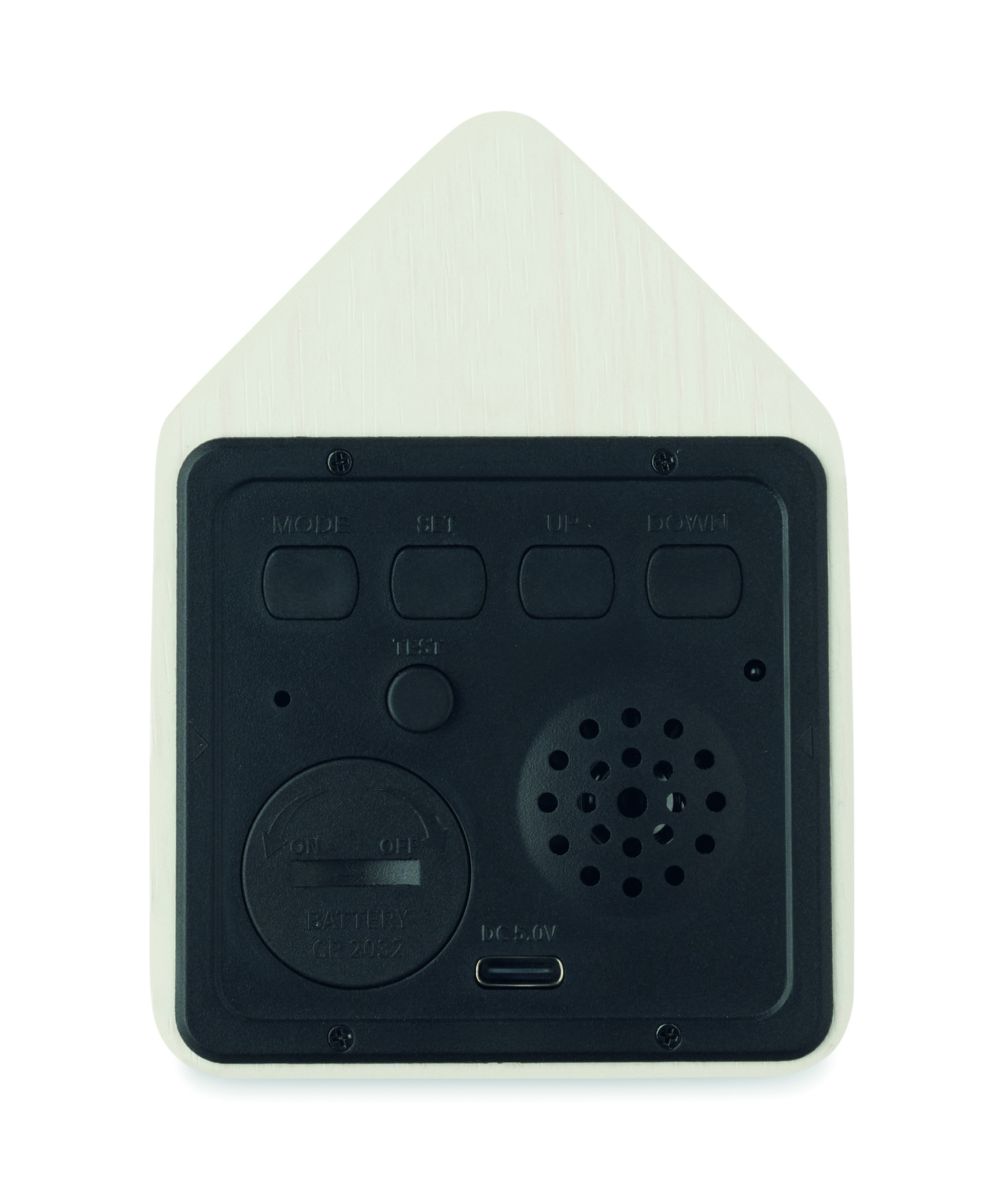 Väike MDF-ist lauakell sisseehitatud äratuskellaga, millel on käo hääl, koos temperatuurinäidikuga. Käo hääl iga täistunni ja äratuse ajal. Valge LED-ekraan. Heli vaigistatakse automaatselt kella 22.00 ja 06.00 vahel. 5-minutilised edasilükkamise intervallid.