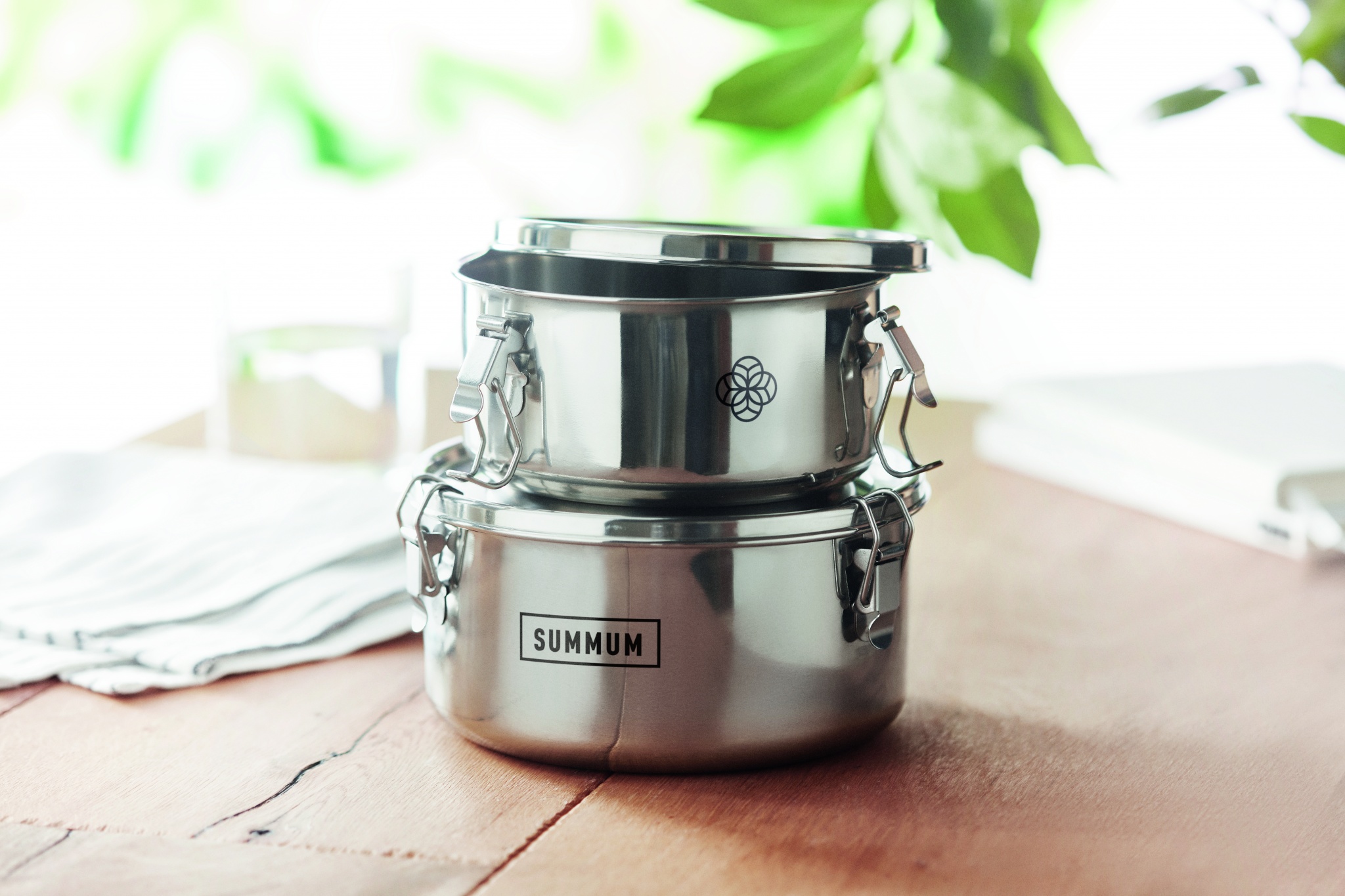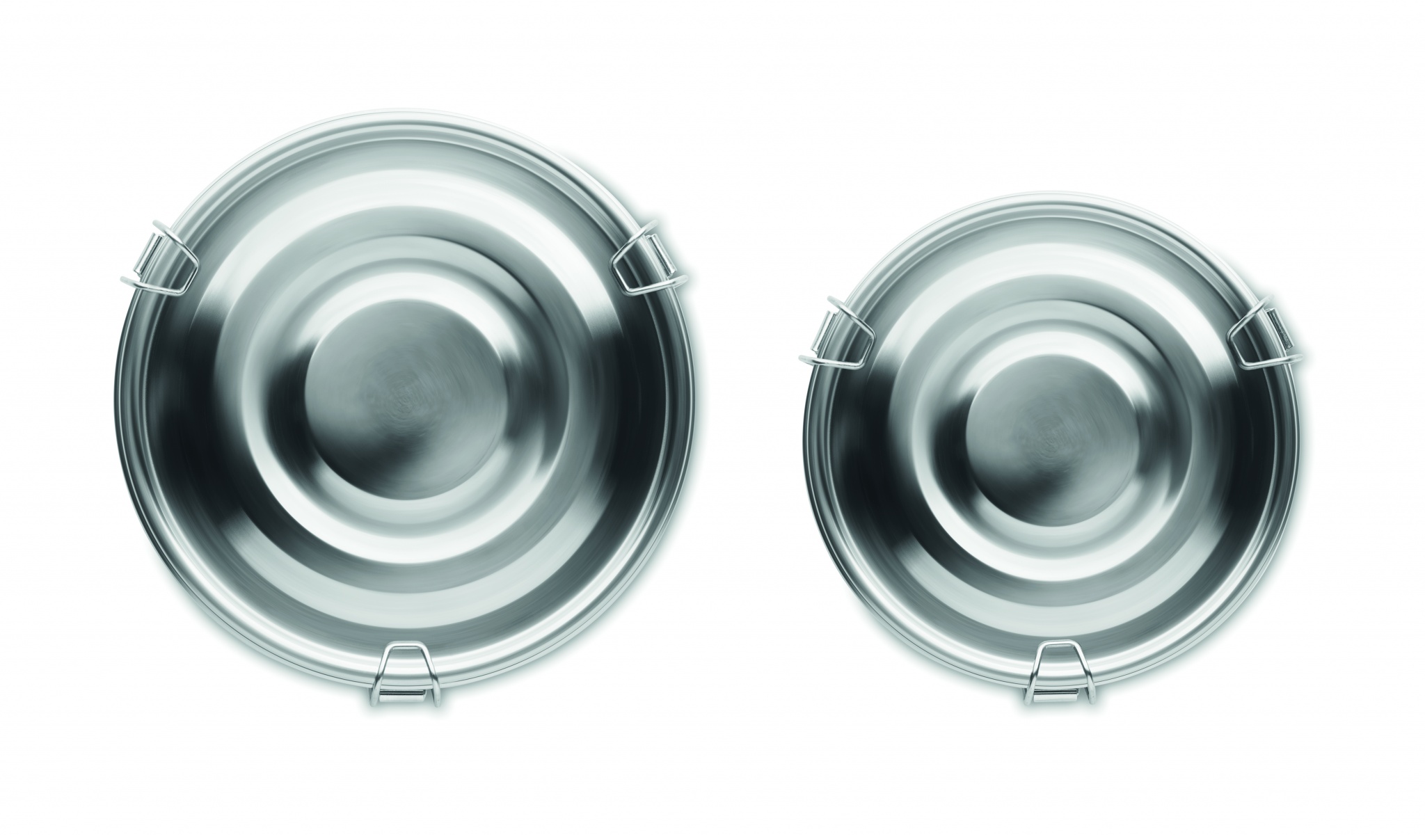 Roostevabast terasest lõunakarbid või hoiukomplekt tugevate ja kindlate küljepandlaga. Mahutavus: 450 ml. ja 900 ml.