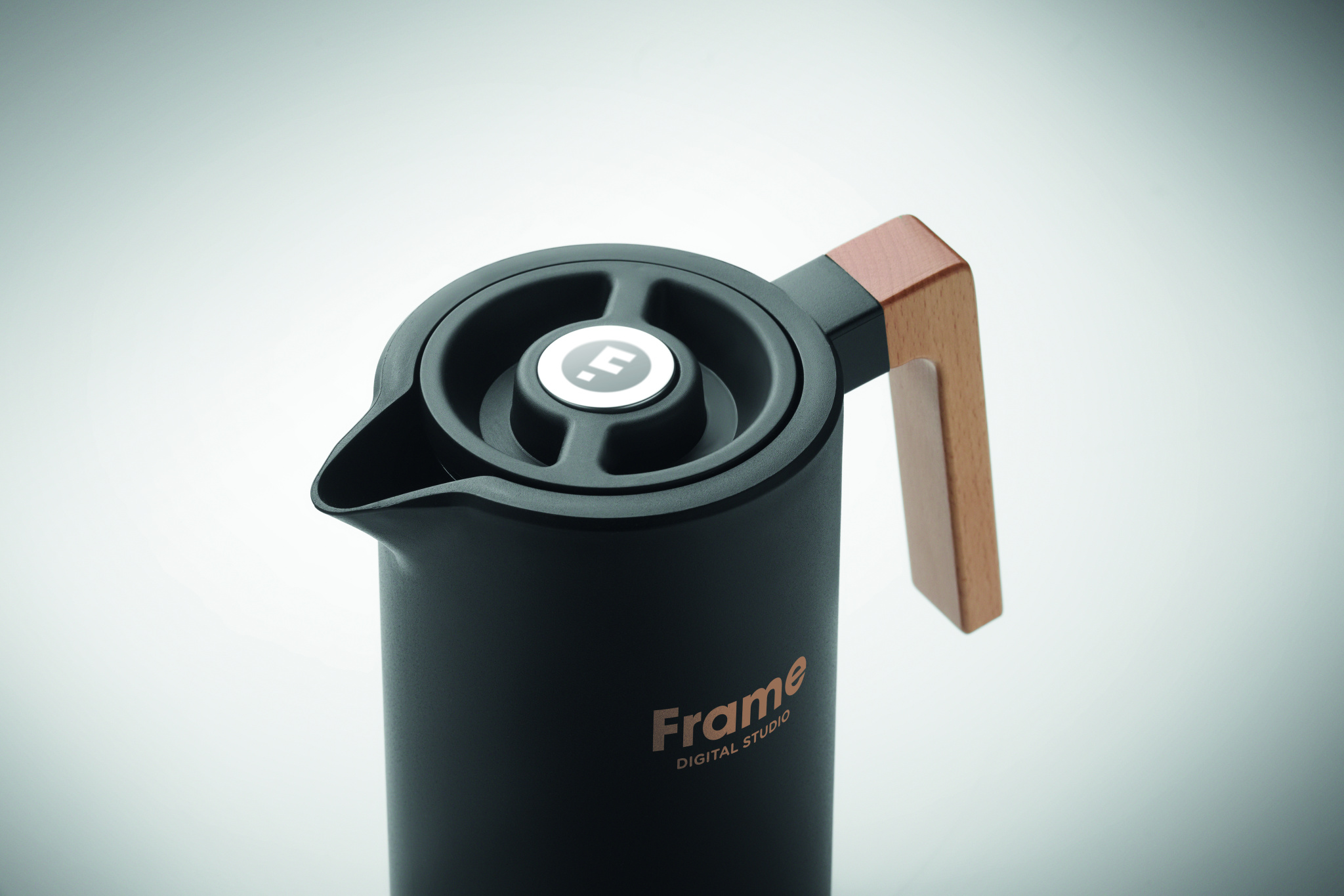 Topeltseinaga isoleeritud termoskann taaskasutatud roostevabast terasest (90% taaskasutatud roostevaba teras ja 10% roostevaba teras) seest ja PP välisseinast puidust käepidemega. Mahutavus: 1 l.