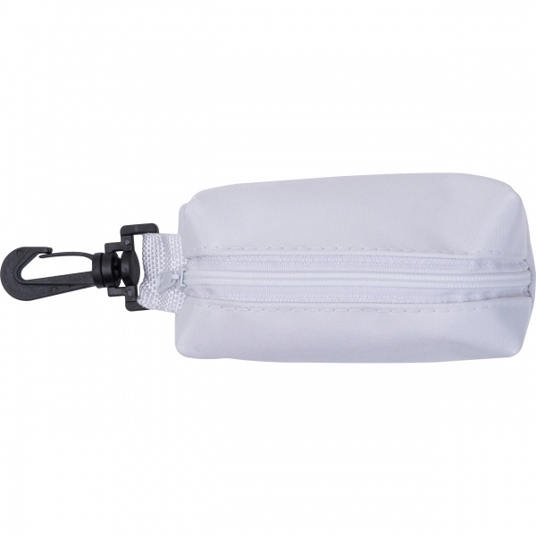 Polüestrist kott lukuga, plastmassist karabiiniga ja kaheksa erivärvilise pliiatsiga.