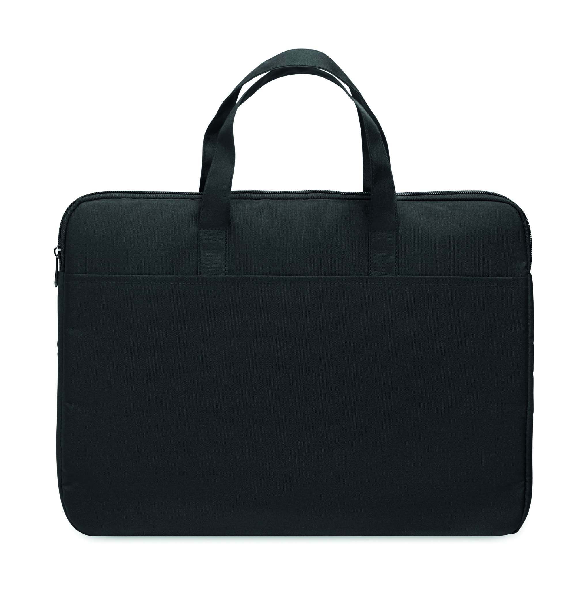 15'' '' kannettava tietokoneen laukku 300D RPET polyesteristä, laukussa on kahvat ja trolleypidike kääntöpuolella.