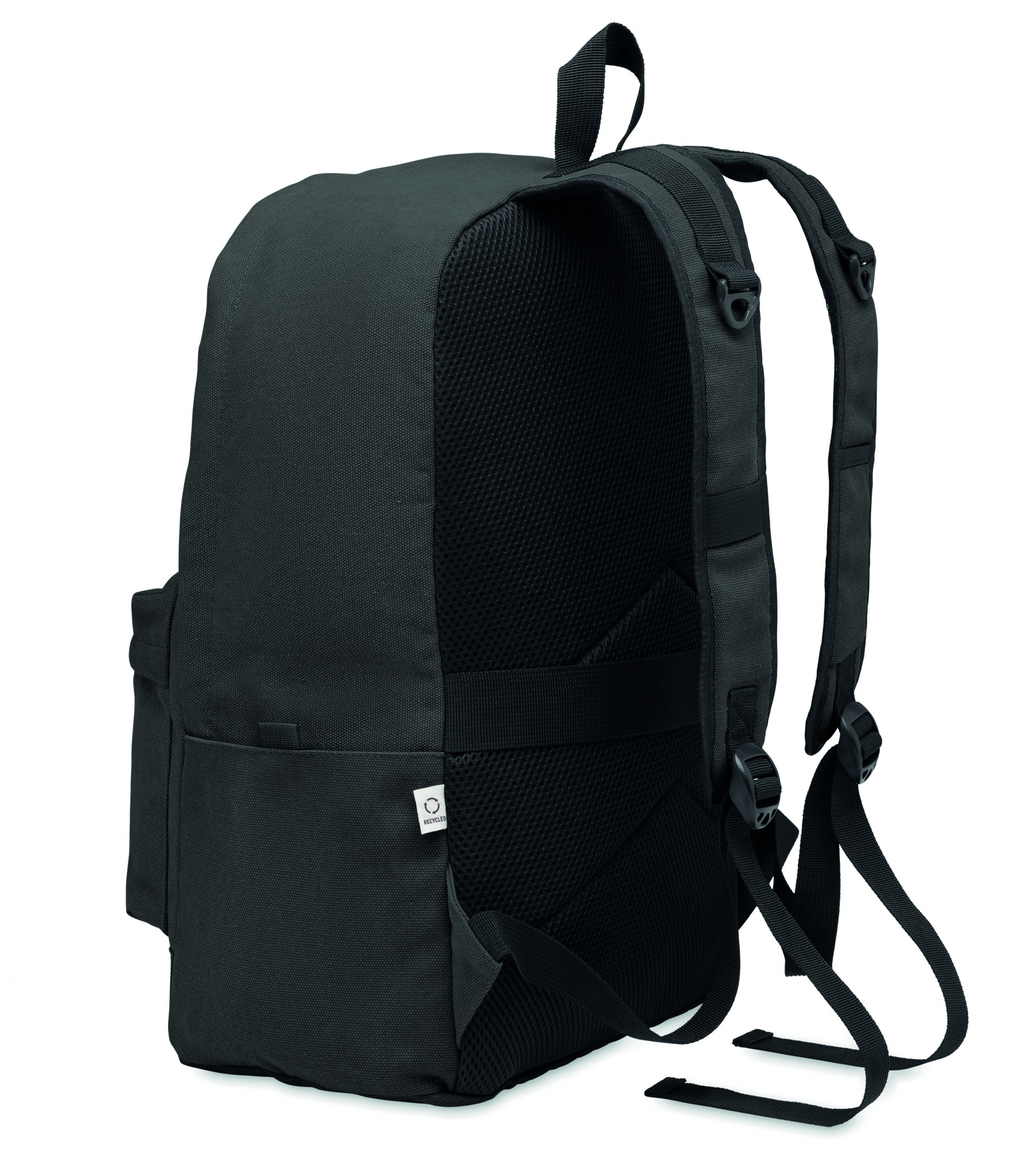 Logotrade liikelahja tuotekuva: 15 tuuman kannettava reppu kierrätetystä esikulutetusta puuvillasta mukautettavalla painatuksella